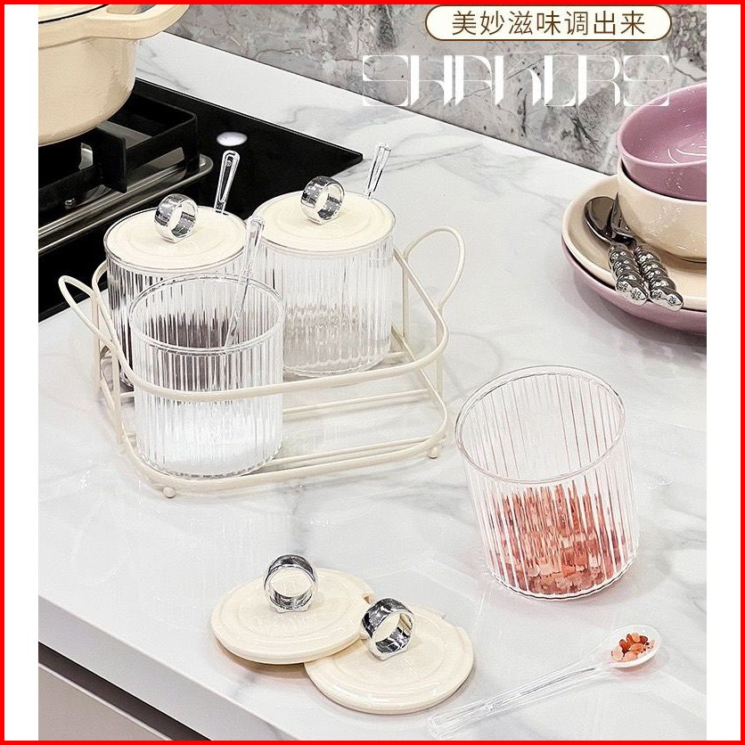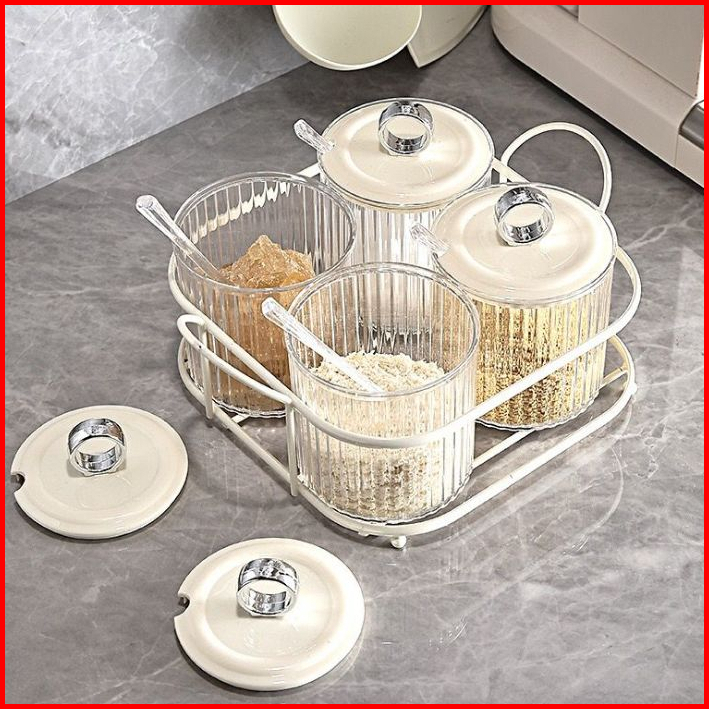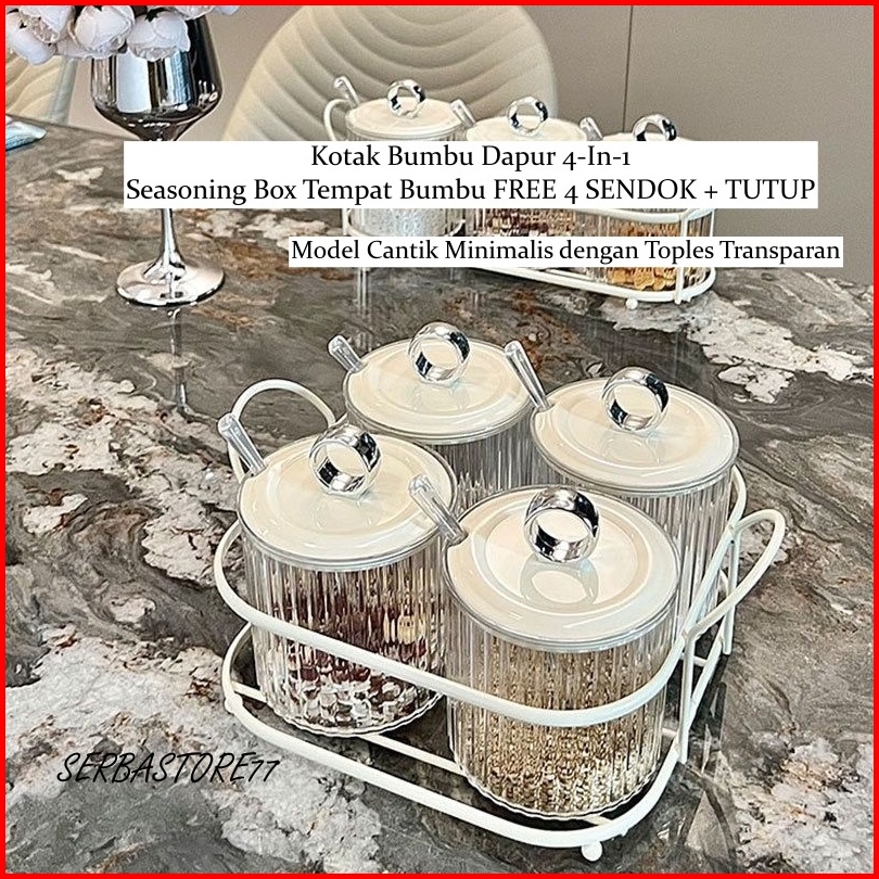 Tempat Bumbu Dapur Set 4 In 1 Transparent Putih Kotak Bumbu Dapur Mewah