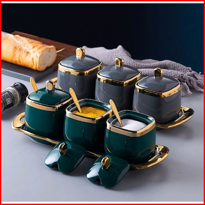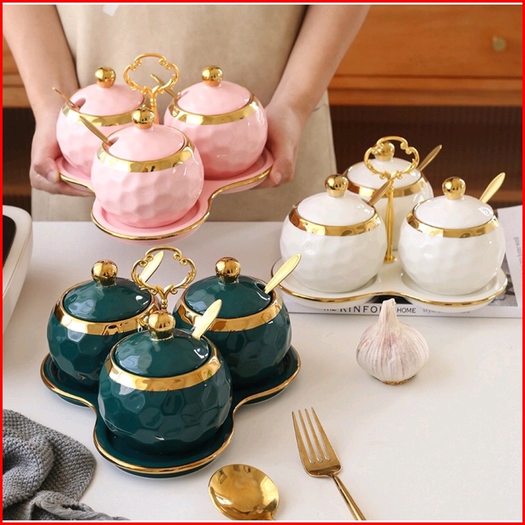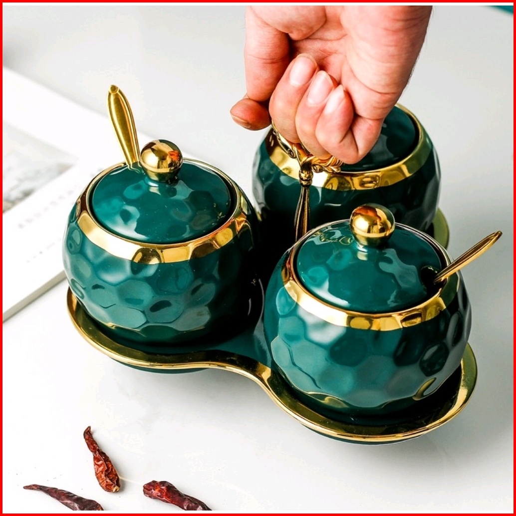 Aveline Tempat Bumbu Keramik Berlin Tempat Bumbu Mewah Tempat Bumbu Green Diamond Set Luxury Tempat Bumbu Nordic Seasoni