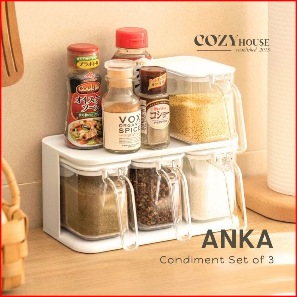Cozyhouse Anka Condiment Set Of 3 Tempat Penyimpanan Bumbu Masakan Kontainer Bubuk Stackable Container Dapur Wadah Rempa