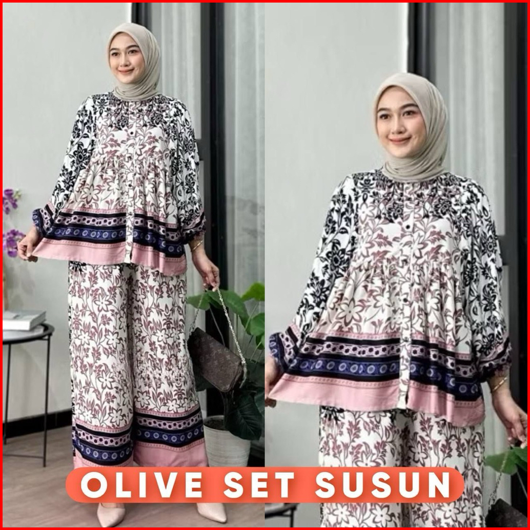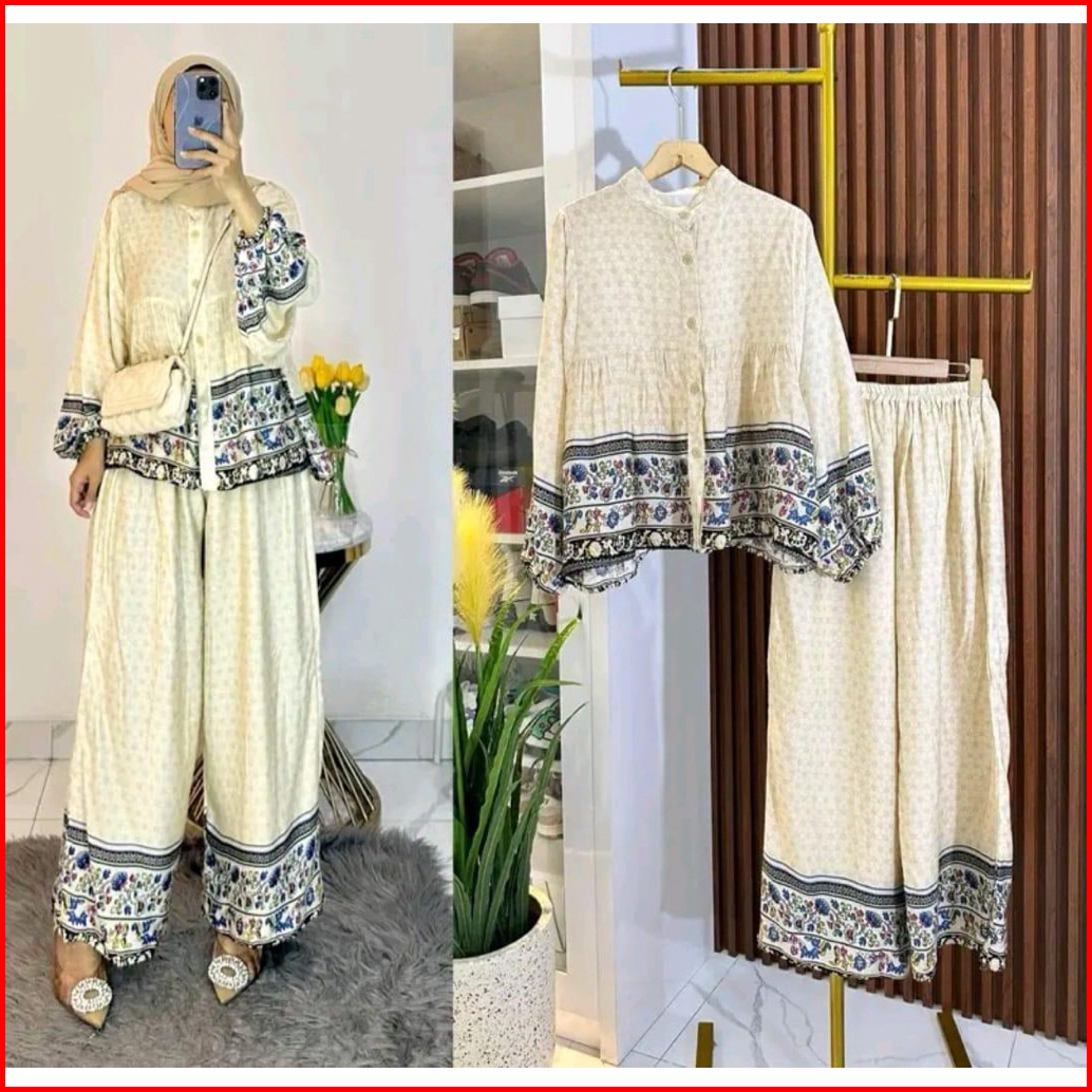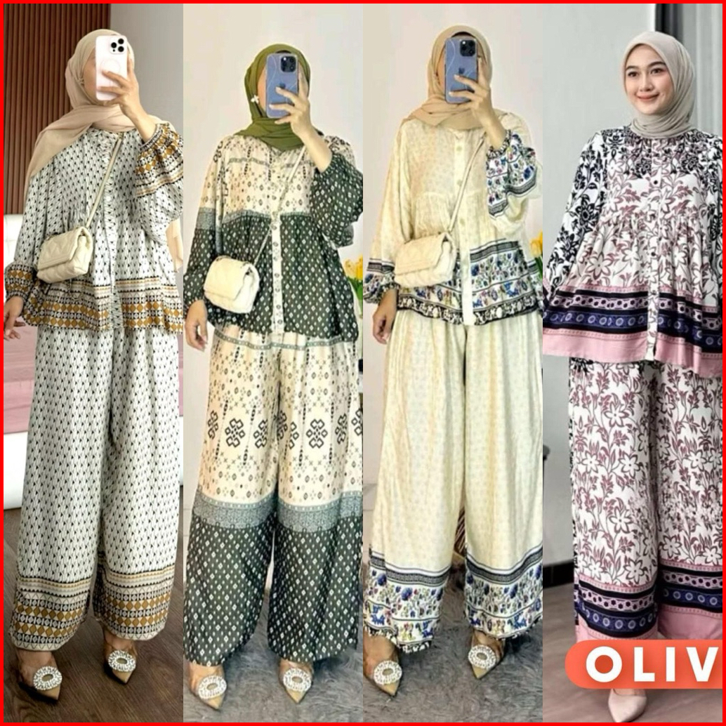 Premium One Set Rayon Diamond Premium Setelan Wanita Alivia Motif Corak Bunga Cantik Elegan Viral Terbaru Kekinian Setel