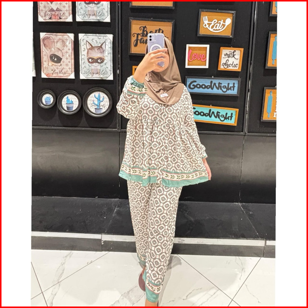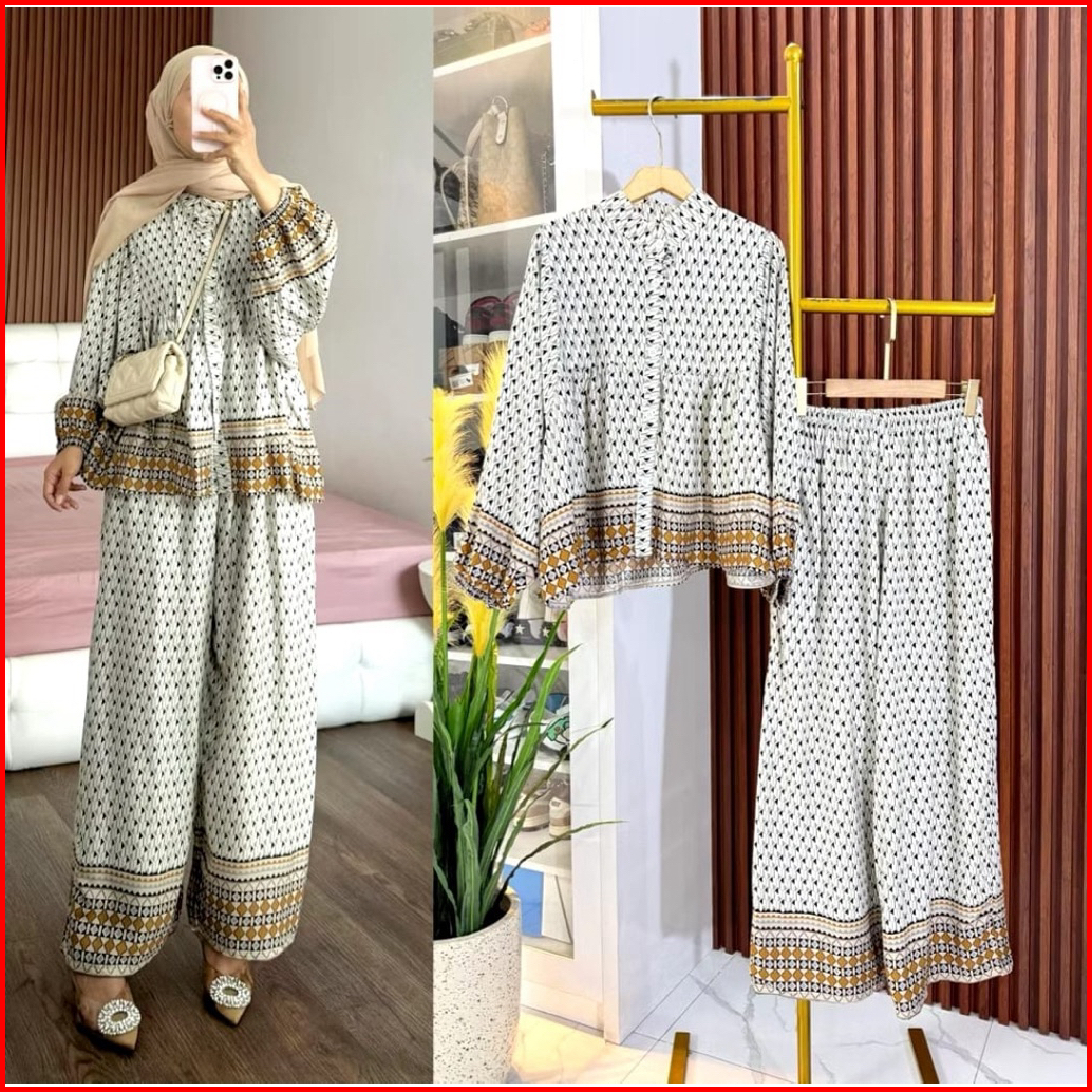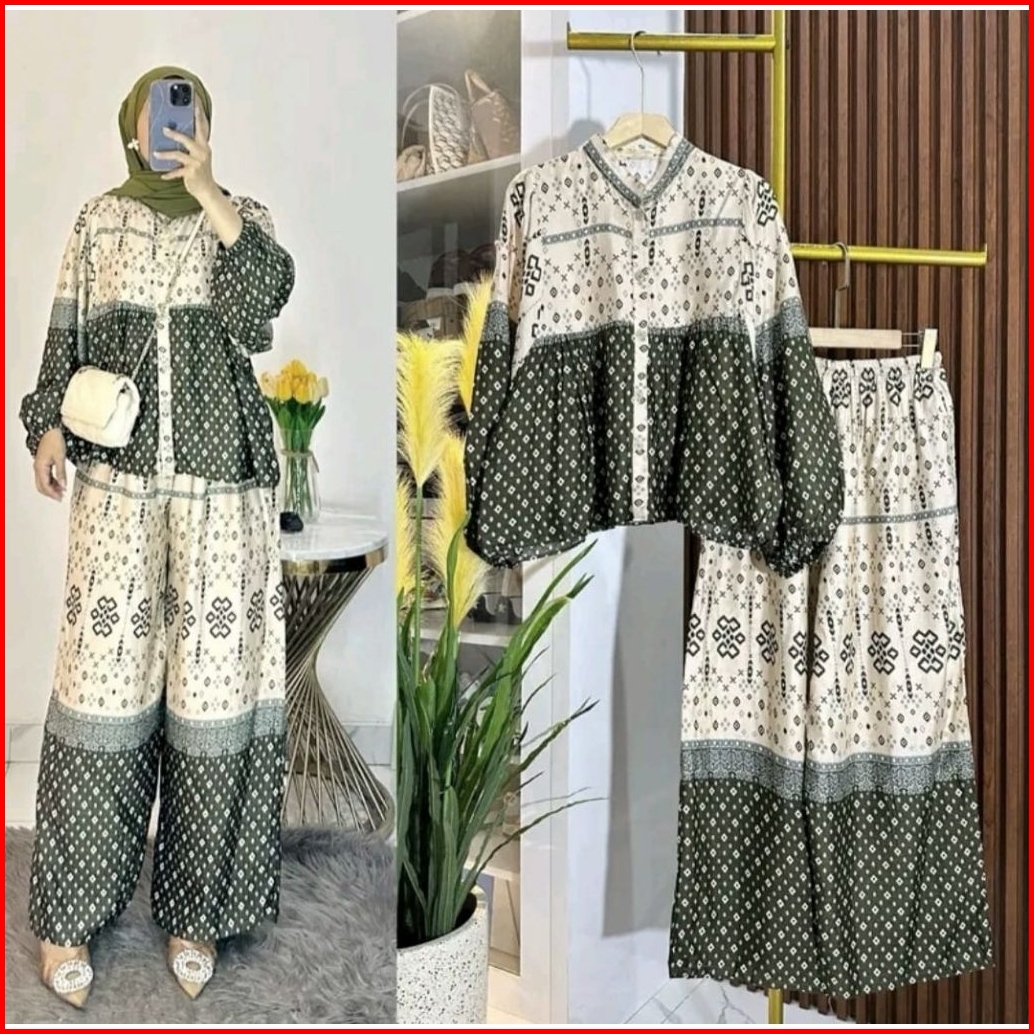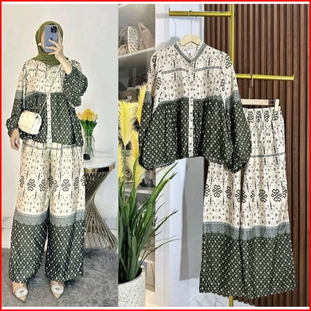 Premium One Set Rayon Diamond Premium Setelan Wanita Alivia Motif Corak Bunga Cantik Elegan Viral Terbaru Kekinian Setel