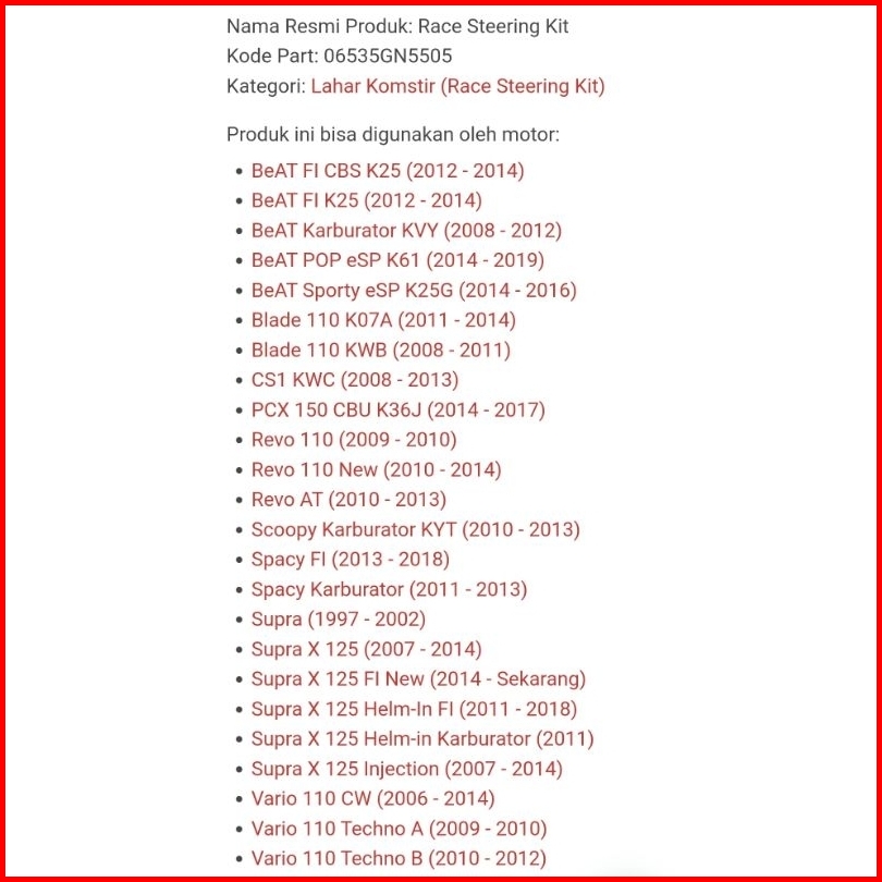 Komstir Comster Comstir Ori Grand Gn5-505 Beat-spacy-vario-scoopy-pcx 150-blade-supra Lama-supra X 125-cs1-revo 110 Abso