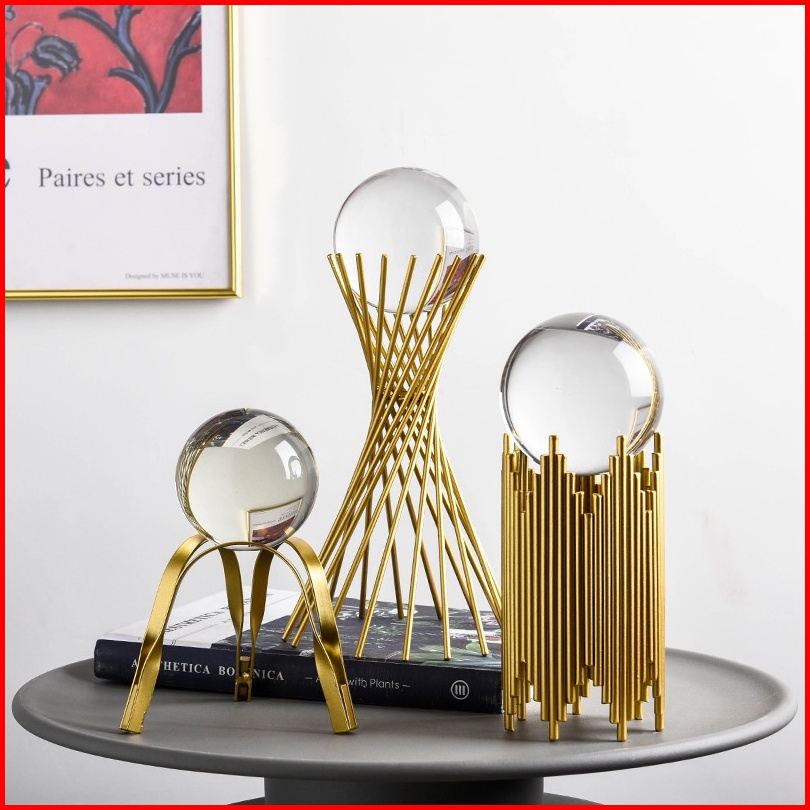 Eyre Jaminan Kualitas Crystal Ball Decorations Nordic Golden Metal Crystal Ball Decoration Dekorasi Pajangan Meja Bola K