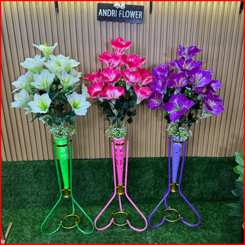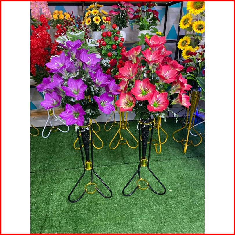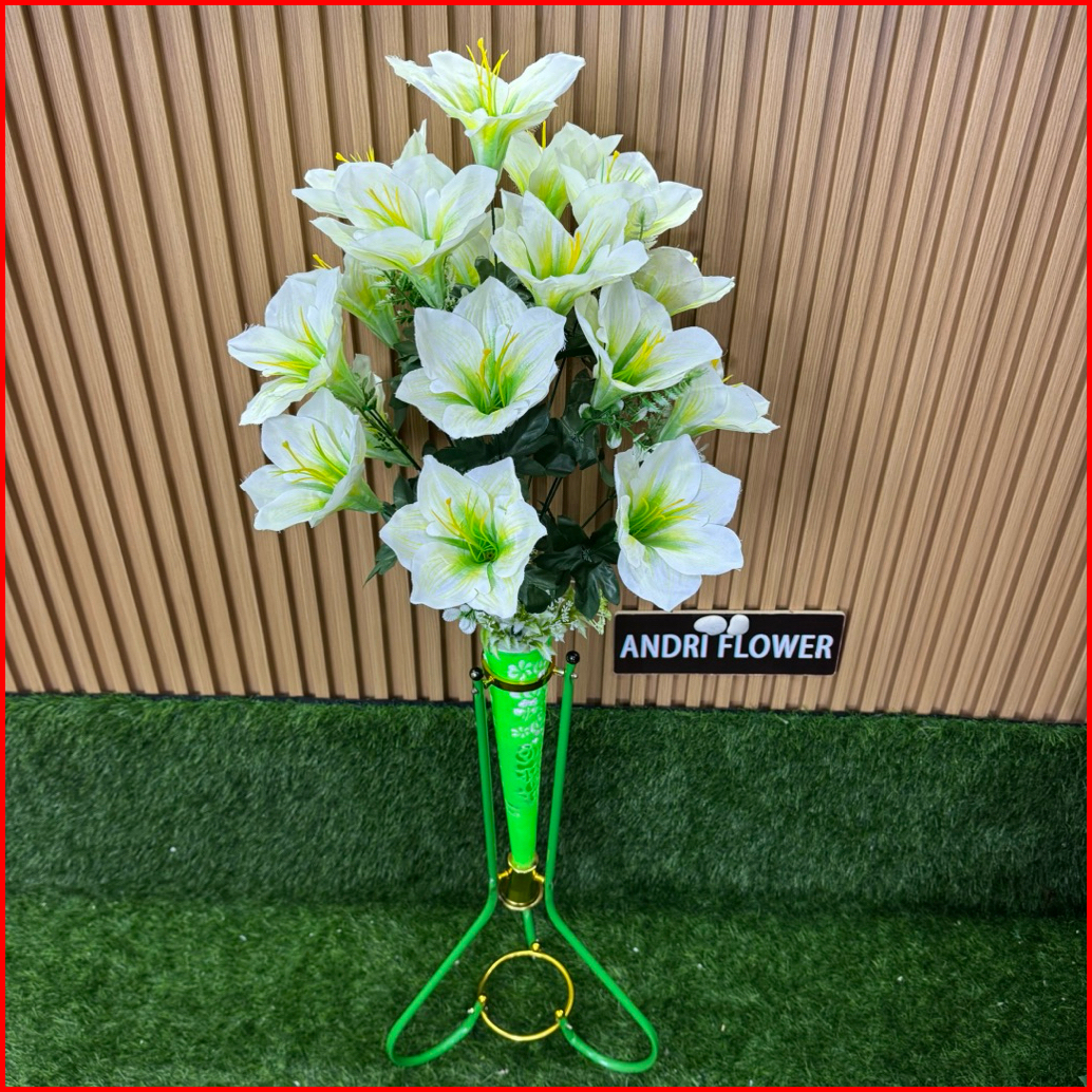Bunga Hias Amarilis 18 Kuntum Satu Set Dengan Pot Besi