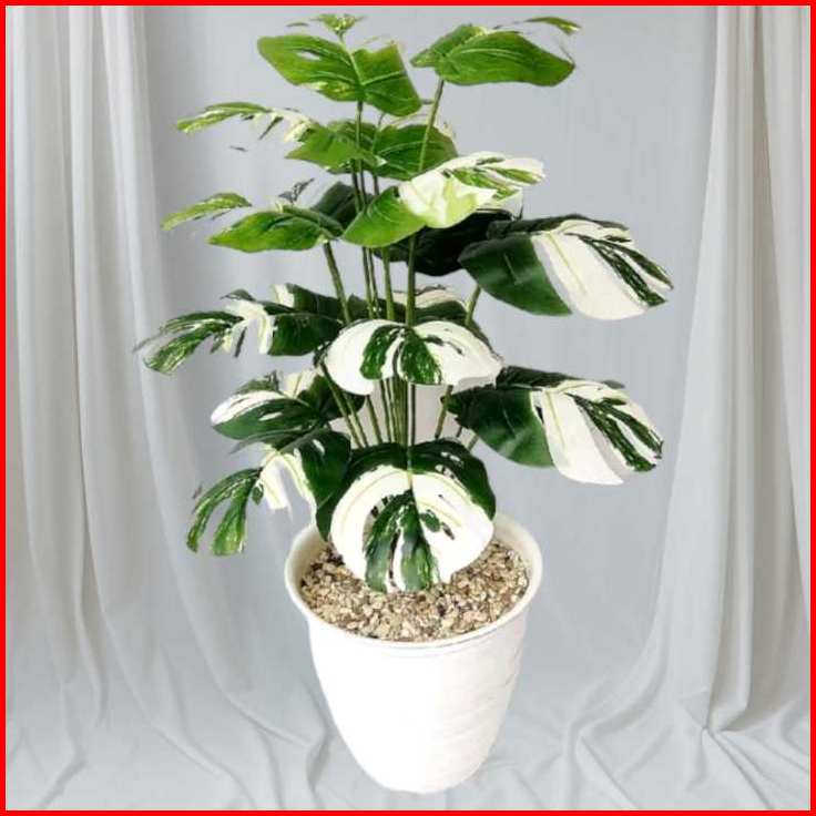 Daun Monstera Jumbo Cabang 18 Daun Monstera Artificial Pot Bunga Hias Murah Bunga Plastik Daun Palsu