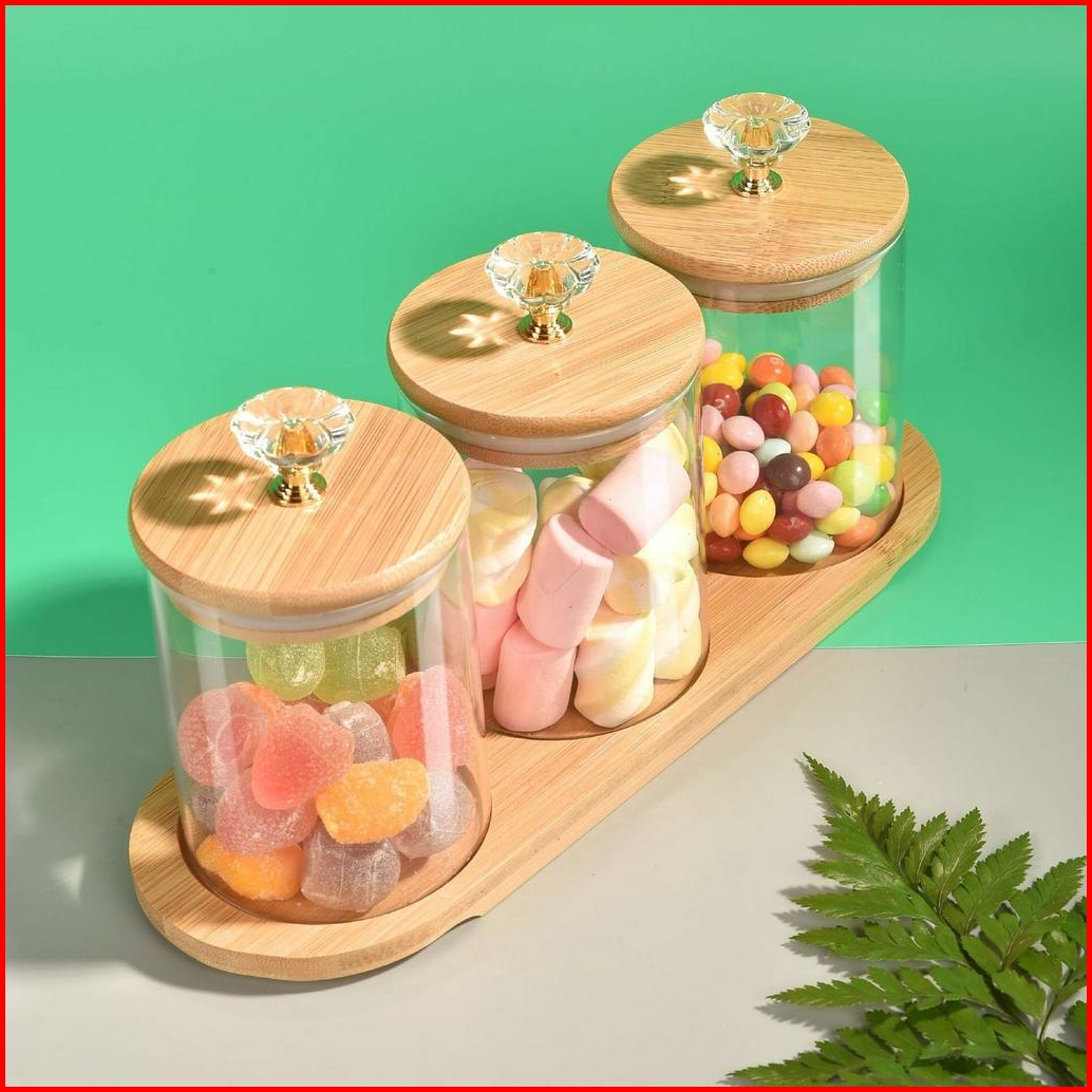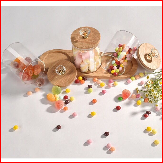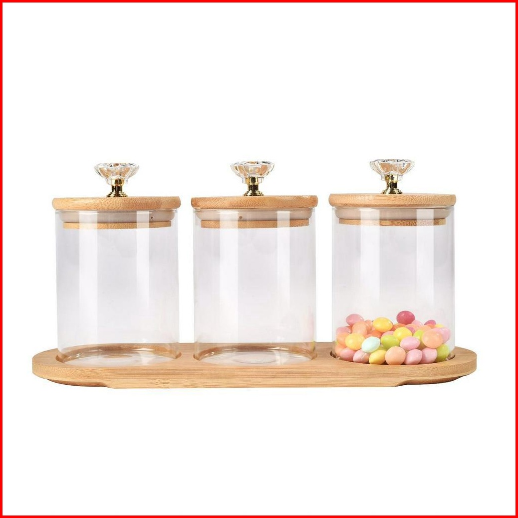Ms Tempat Bumbu Candy Jar Toples Kaca Diamond 3in1 Dengan Nampan Kayu