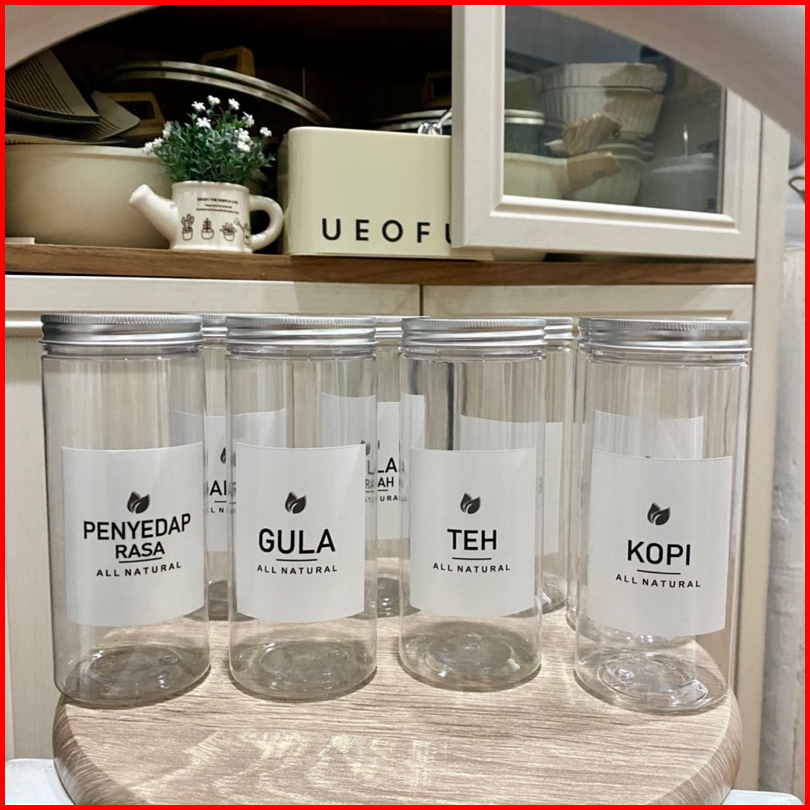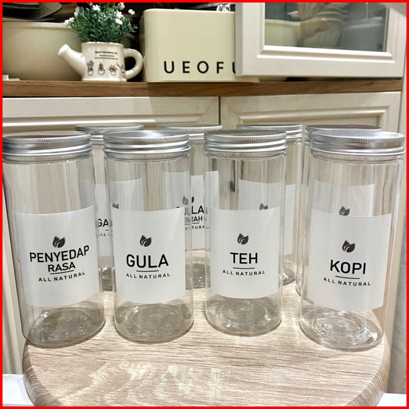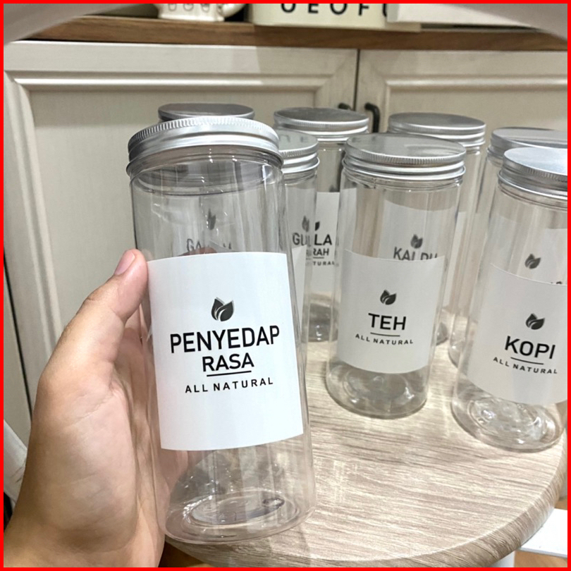 Paket Hemat 8pc Delapan Toples Bumbu Dapur 460ml Tutup Silver Free Stiker Anti Air
