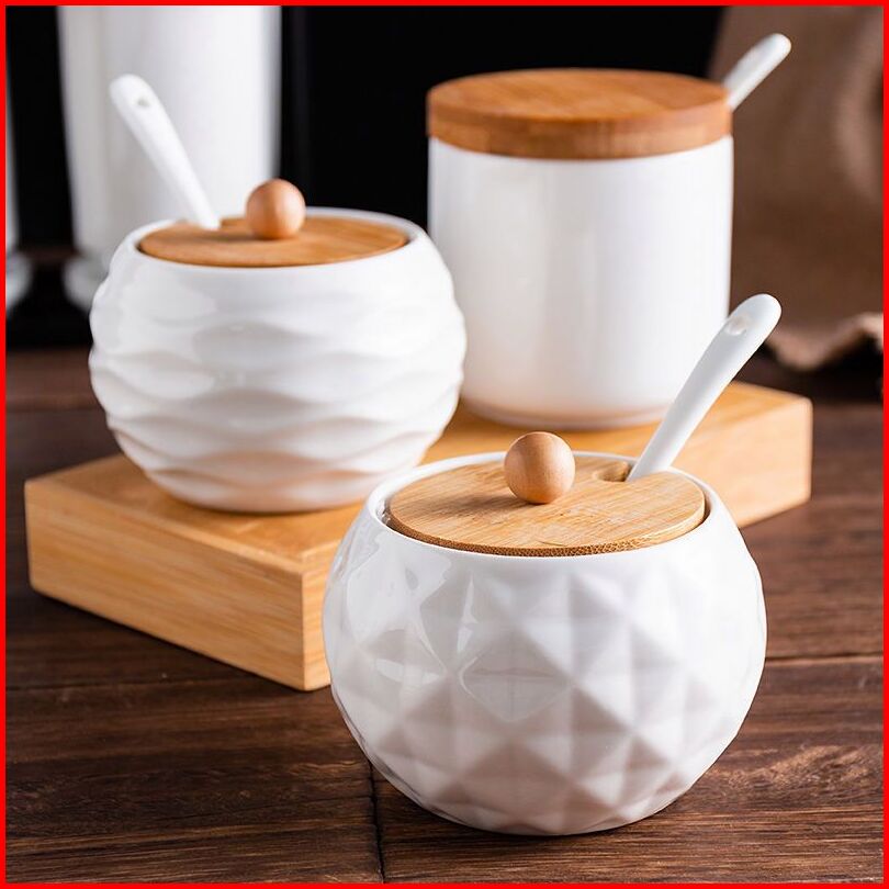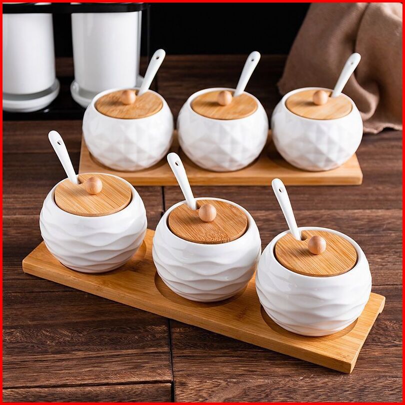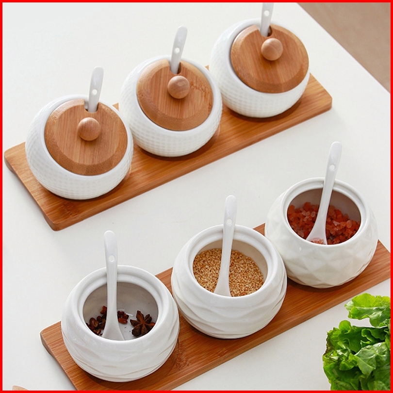 Guci Bumbu Keramik Guci Bumbu Dapur Set 3 3 Guci 1 Alas Kayu