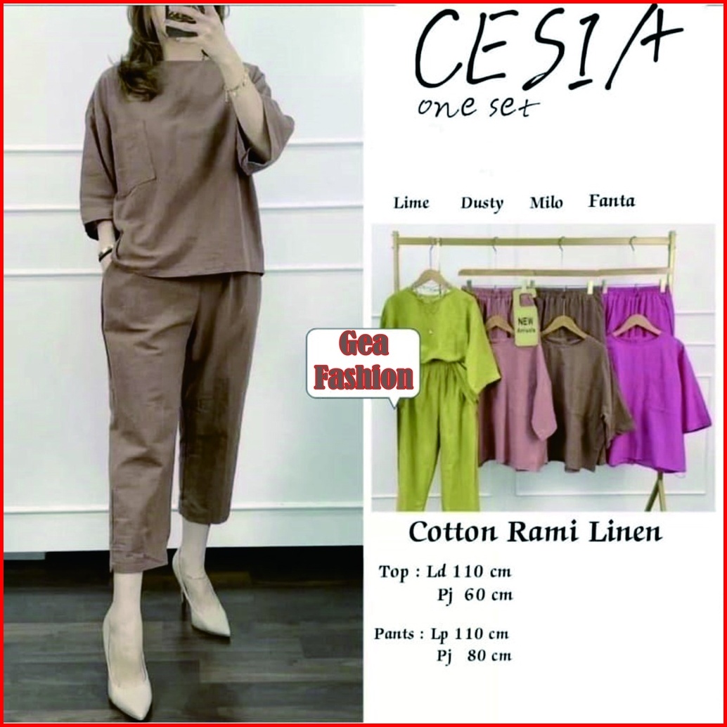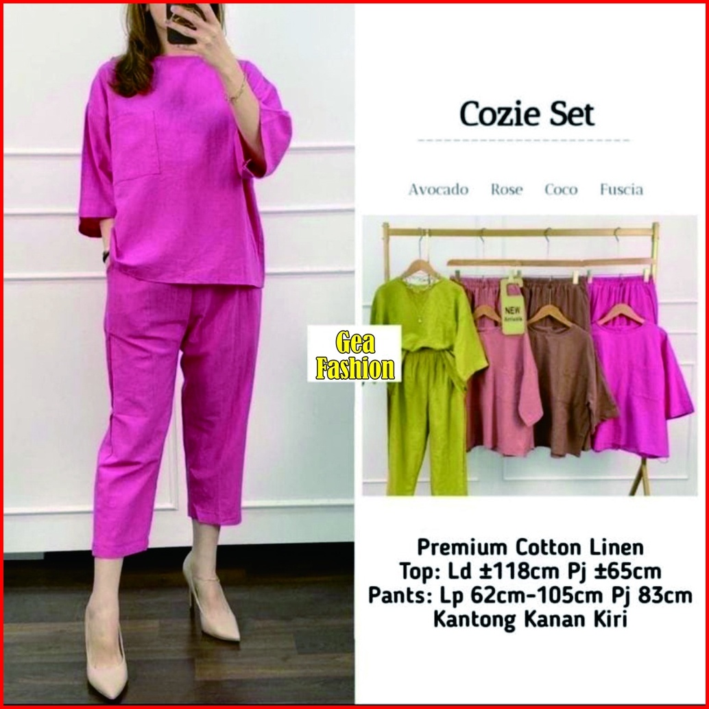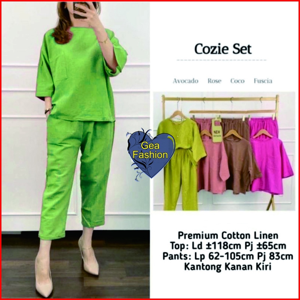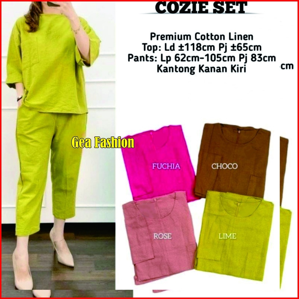 Cozie Set Top Pants Setelan One Set Katun Linen Wanita Terbaru Xxxl Premium Terlaris Kekinian Murah