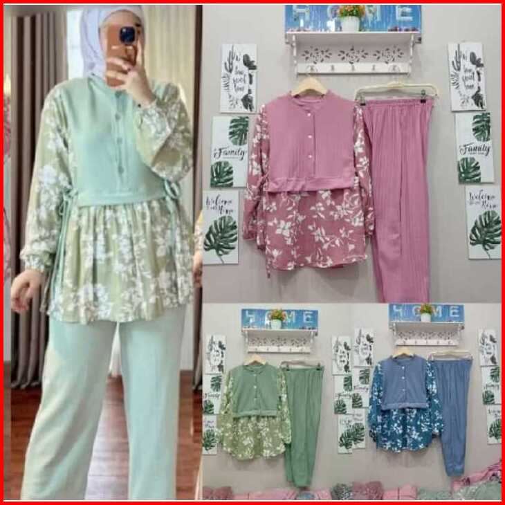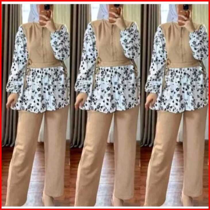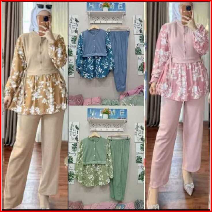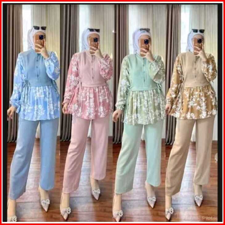 Model Baru Serena Ones Set Motif Bunga Kombinasi Crinkle Airflow - Limitted Edittion Terbaru 2024
