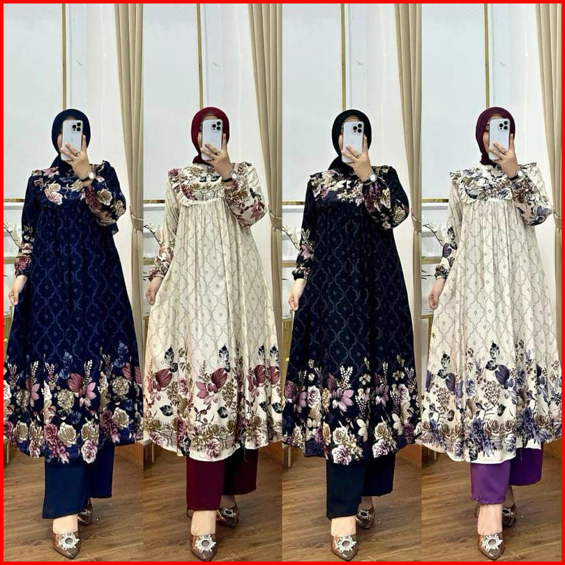 Stelan Long Tunik Zuhra Rayon Diamond Adem Nyaman
