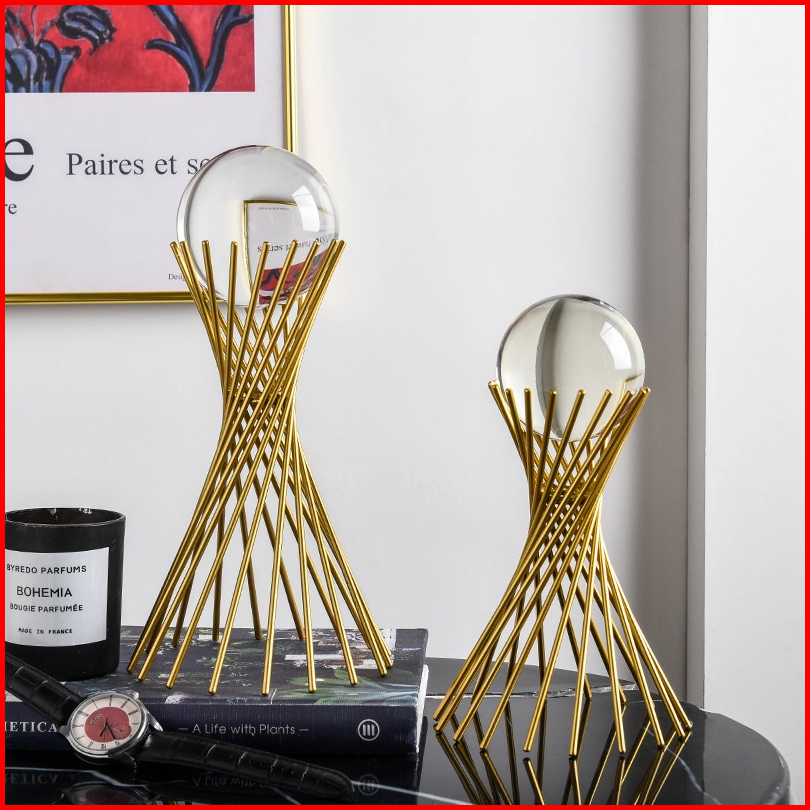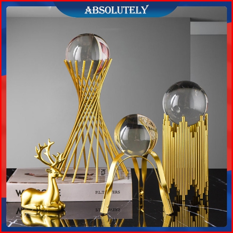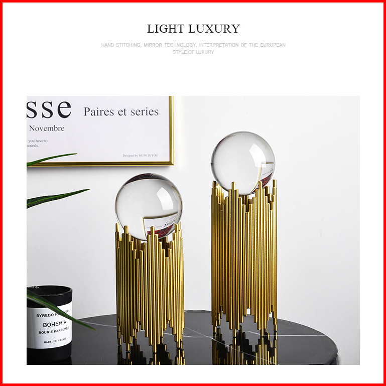 Crystal Ball Decorations Nordic Golden Metal Crystal Ball Decoration Dekorasi Pajangan Meja Bola Kristal Properti Untuk
