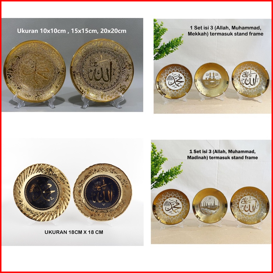 10X10 CM, 11x11 CM, 11x11 Mekkah Madinah, 15X15 CM, 18X18 CM, 20X20 CM, 25X25 CM MERAH, 25X25 CM COKLAT, Set3pcs MHMD semua, Set3pcs ALLAH semua, set3 mhmd2 allah1, set3 allah2 mhmd1, Piring Set3pc Mekkah, PiringSet3pc Madinah