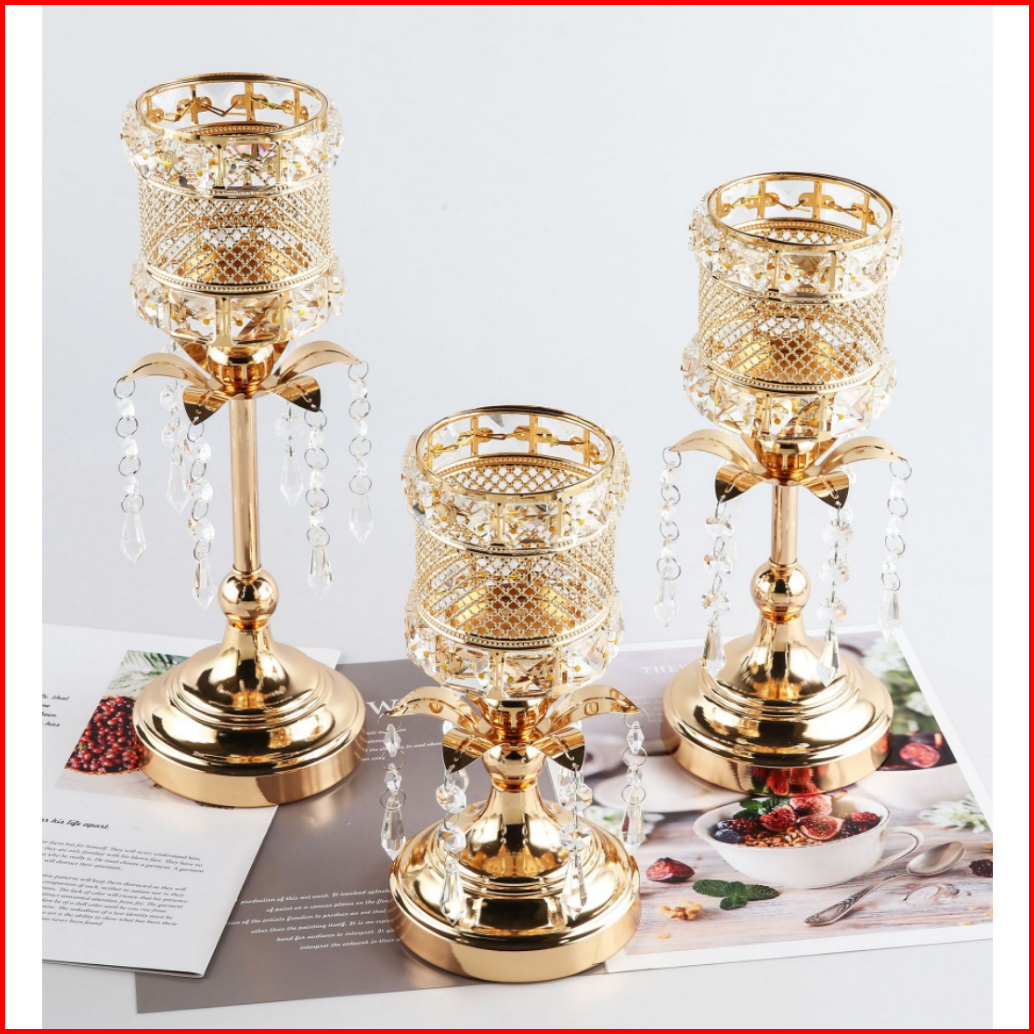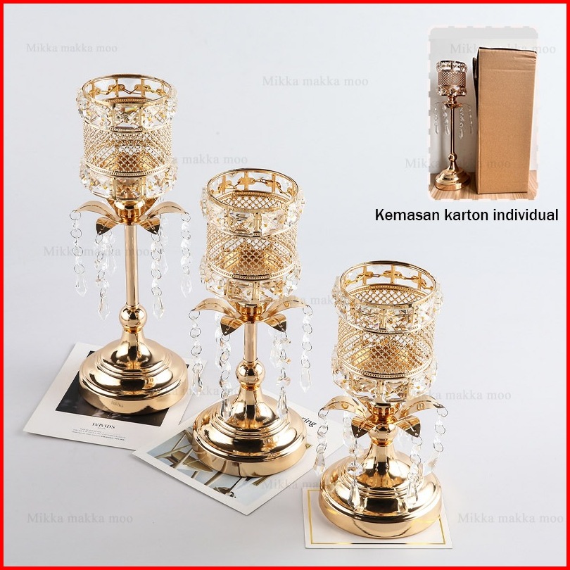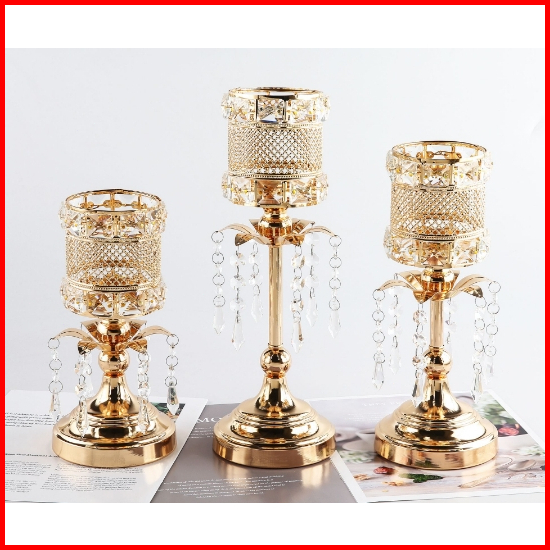 Kemasan Karton Individu 3 Height Kristal Candelabra Ornamen Dekorasi Candle Holder Dekorasi Rumah Cahaya Lilin Makan Ala