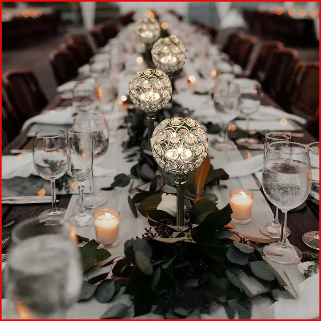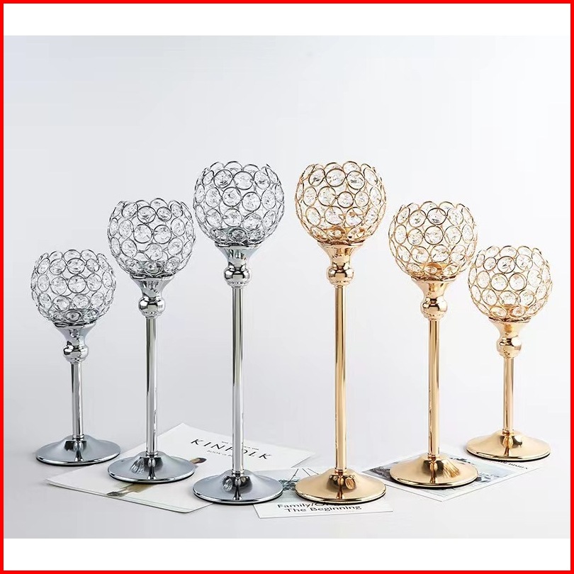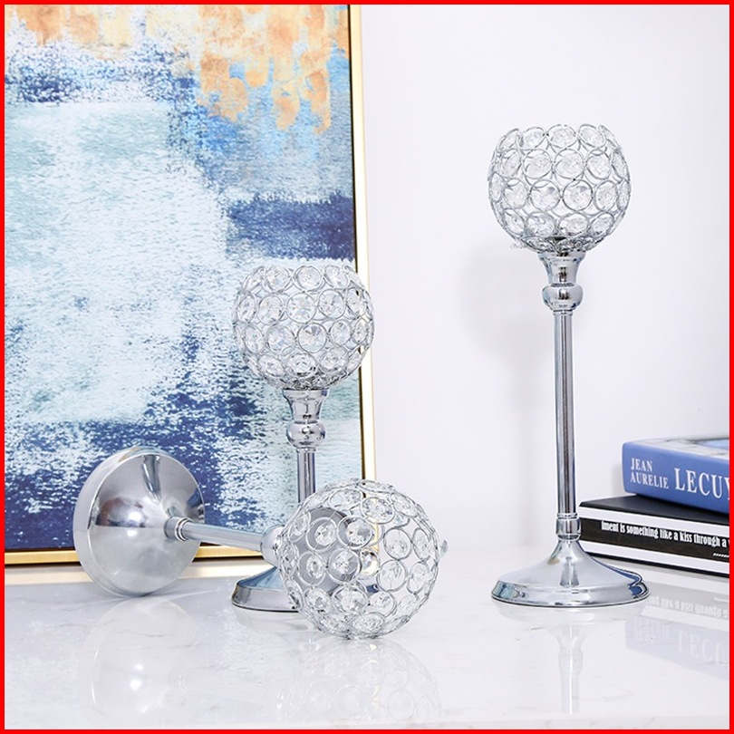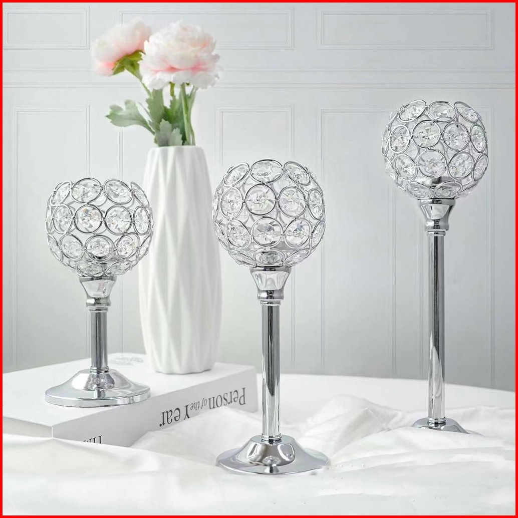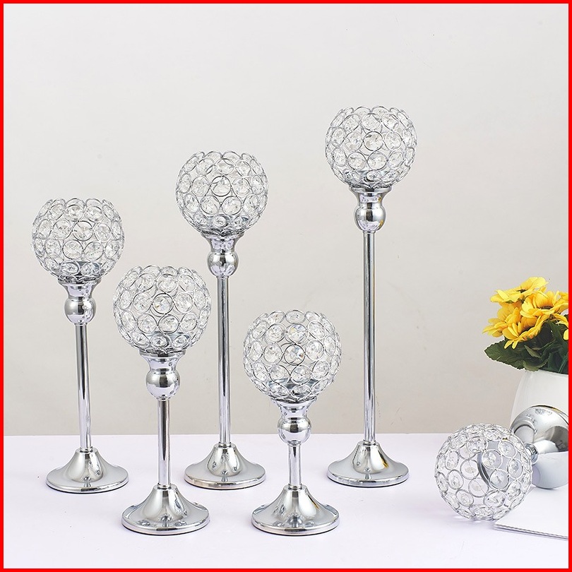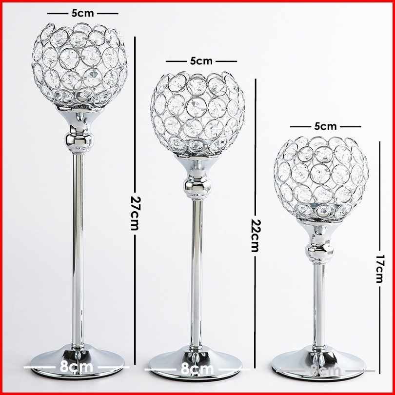 Paket Individu 3 Height Tempat Lilin Kristal Perak Candelabra Ornamen Kristal Malam Alat Peraga Pernikahan Peraga Dekora