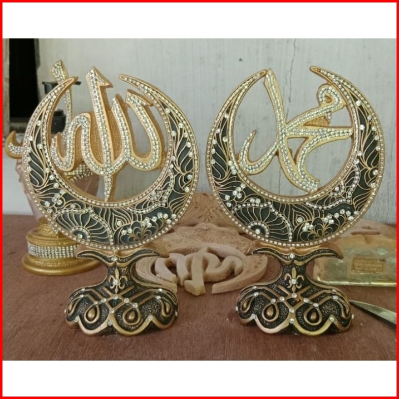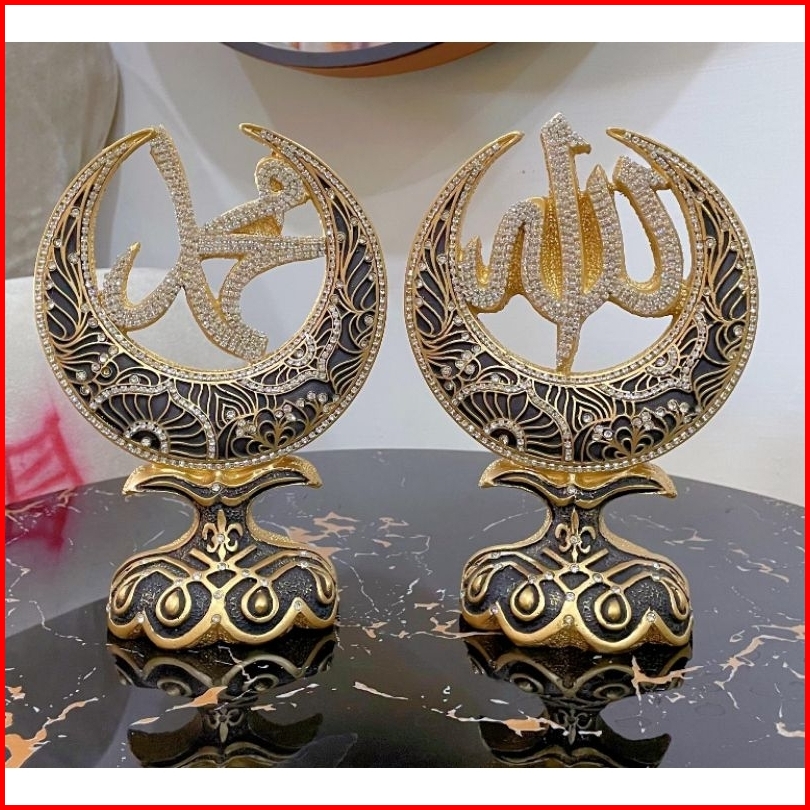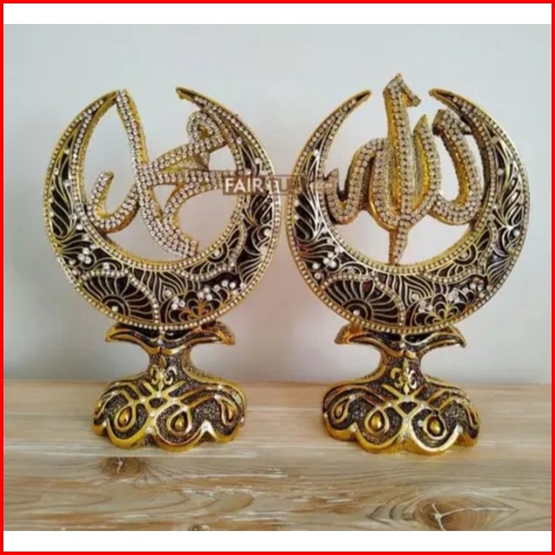 Pajangan Meja Hiasan Meja Lafadz Allah Muhammad Bentuk Bulan Suvenir Mekkah Madinah Umroh Haji Hiasan Meja Lemari Kaligr