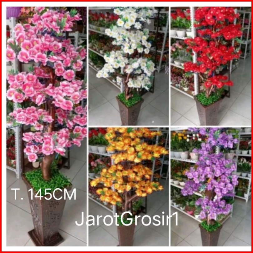 Bunga Hias Plastik T 145cm Pot Dan Batutanaman Bunga Hias Artificial Dekorasi Sudut Ruangan Bunga Hias Cakar Daun Tinggi