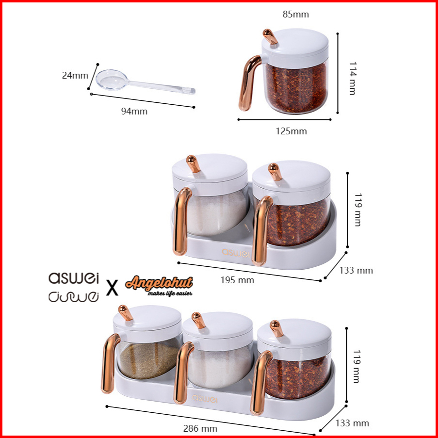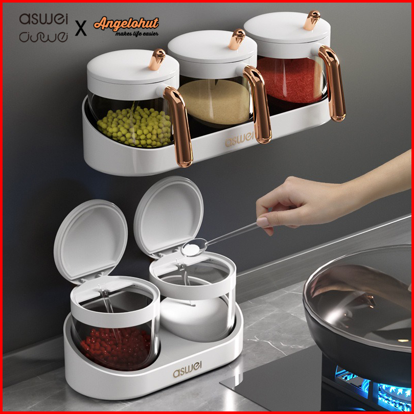 Aswei A11x Rak Tempat Bumbu Dapur Isi 2 Wadah 3 Wadah