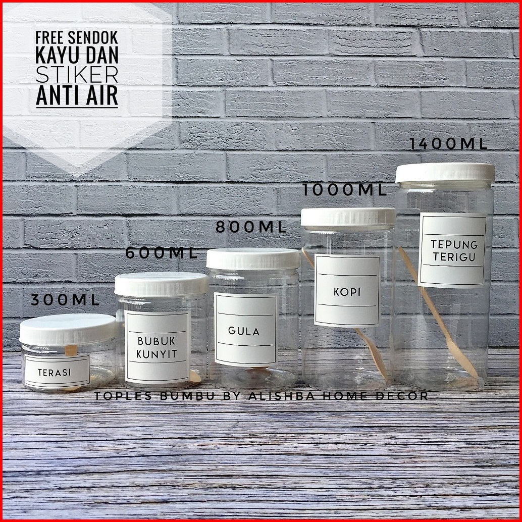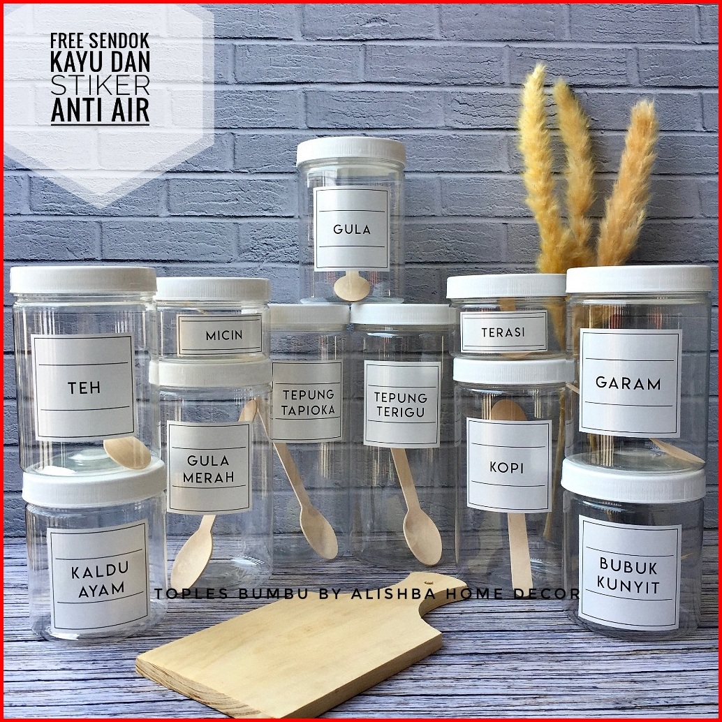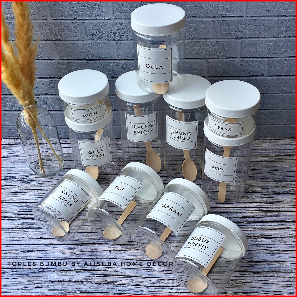 Toples Bumbu Dapur Tutup Putih Plastik 11 Pcs Paketan Model Minimalis
