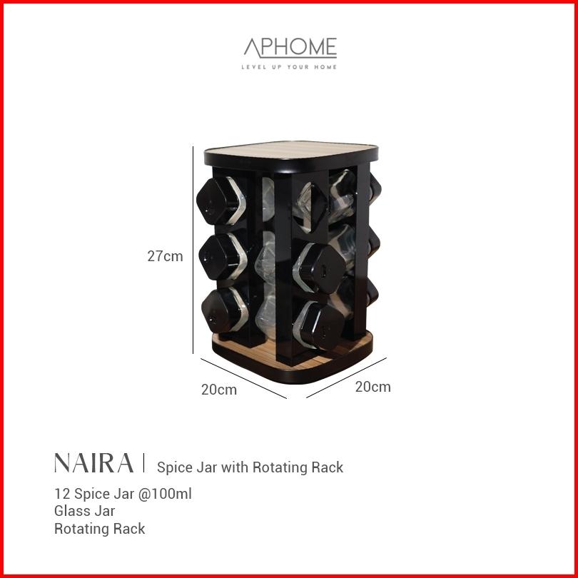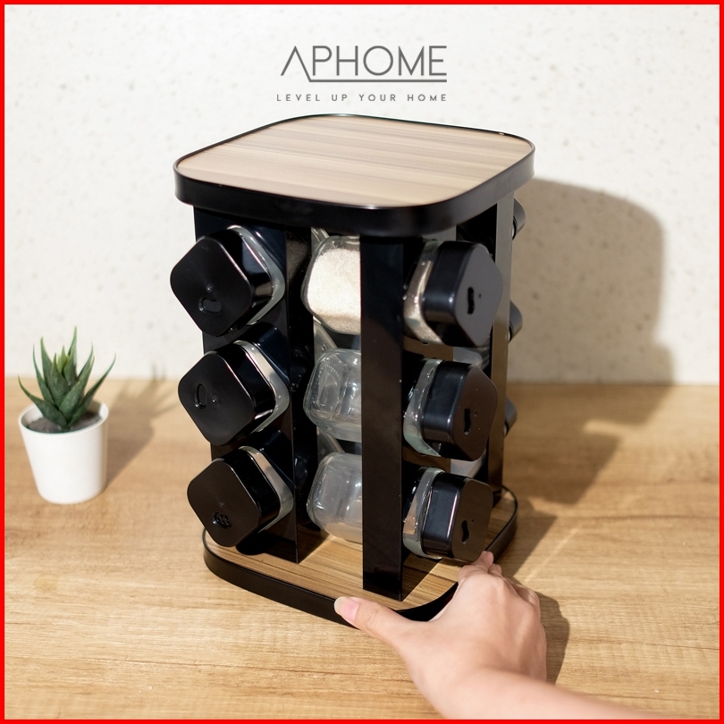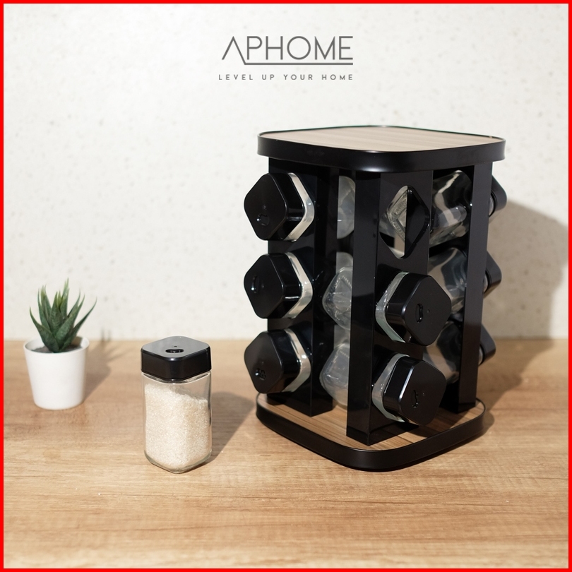 Aphome Wadah Bumbu Putar Set 12pcs Rak Bumbu Berputar Spice Jar Rotating Rack Tempat Bumbu Set Naira