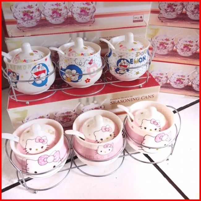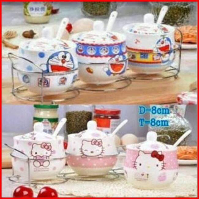 Wadah Bumbu Keramik Karakter Dgn Rak Besi