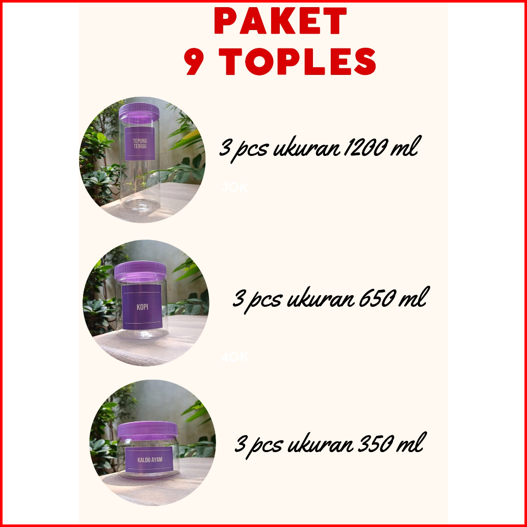 Paket Toples Bumbu Dapur Set Ungu Lilac 9 Pcs 1200 Ml 650 Ml 350 Ml