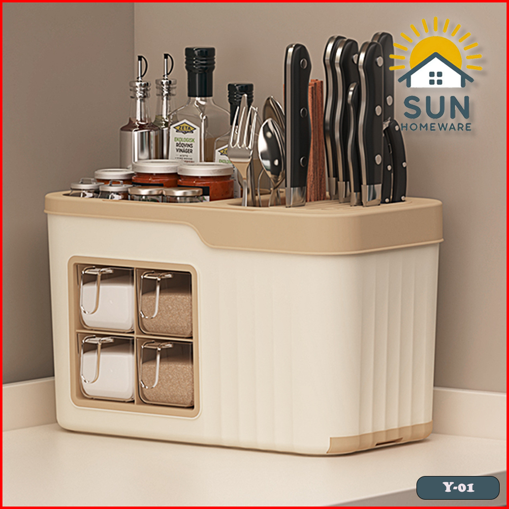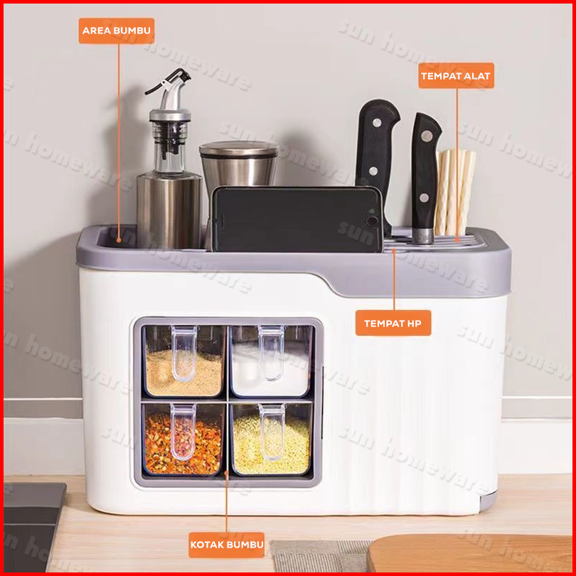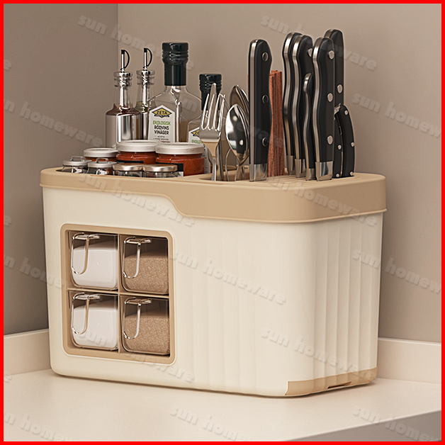 Sun Tempat Bumbu Rak Dapur Bumbu 4 Laci Tempat Pisau Botol Serbaguna