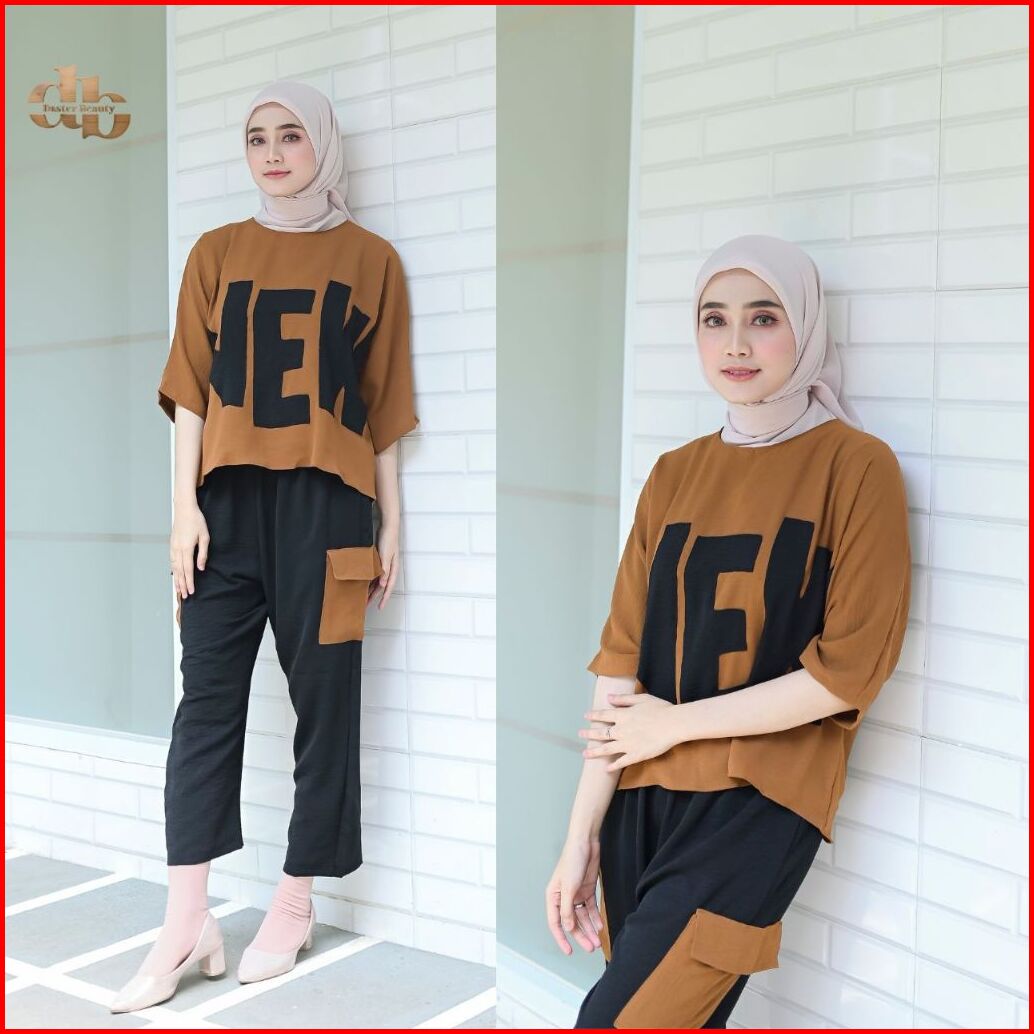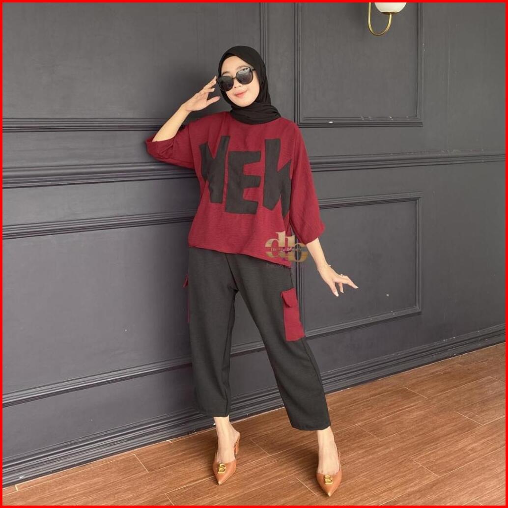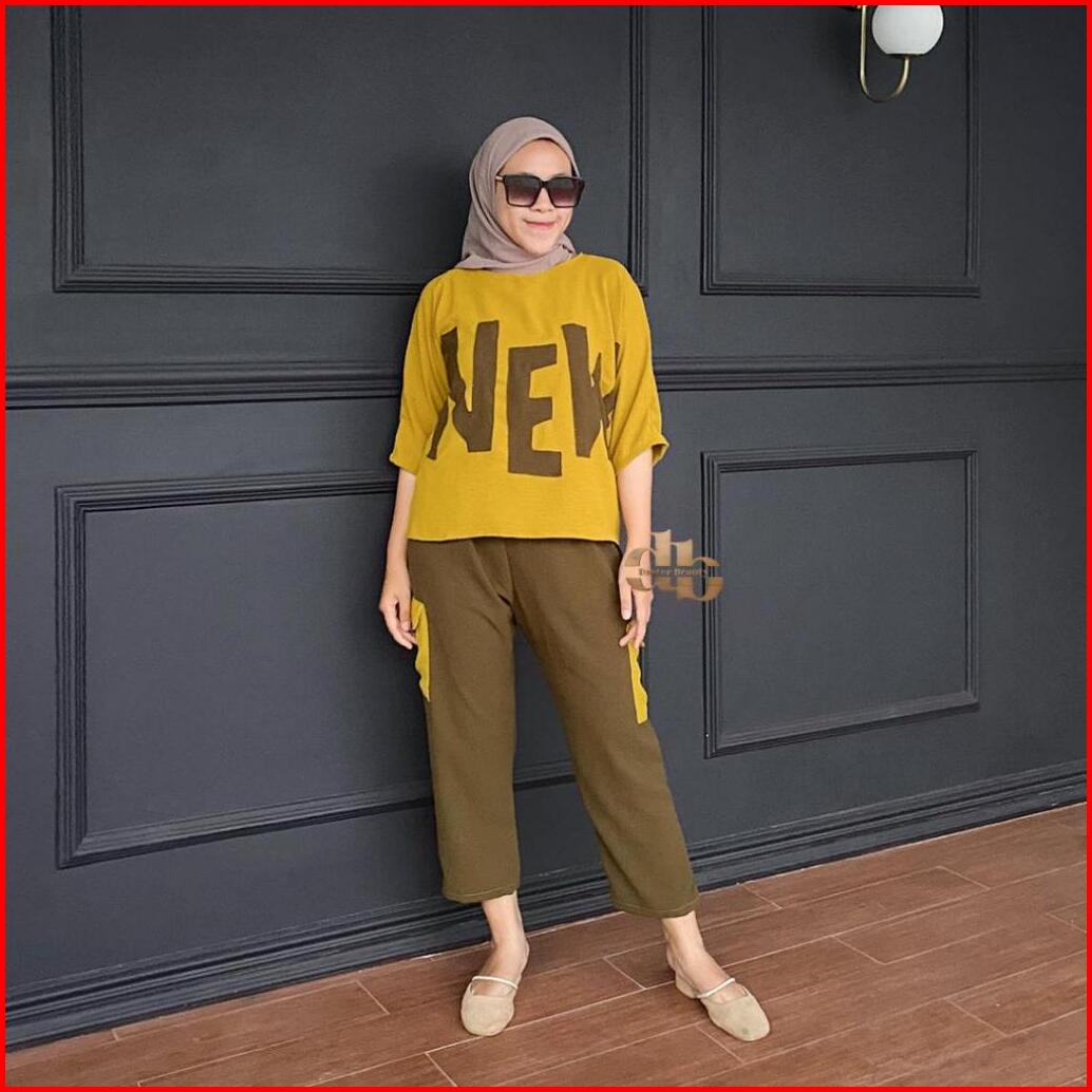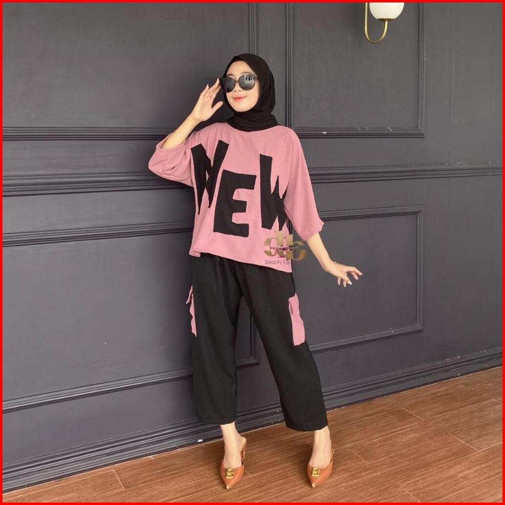 New Setelan One Set Wanita Lengan 7 8 Celana Panjang Baju Atasan Setelan Wanita Dewasa Polos