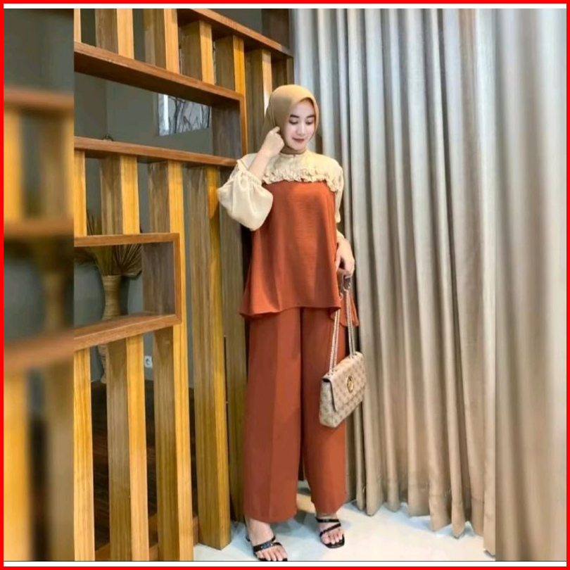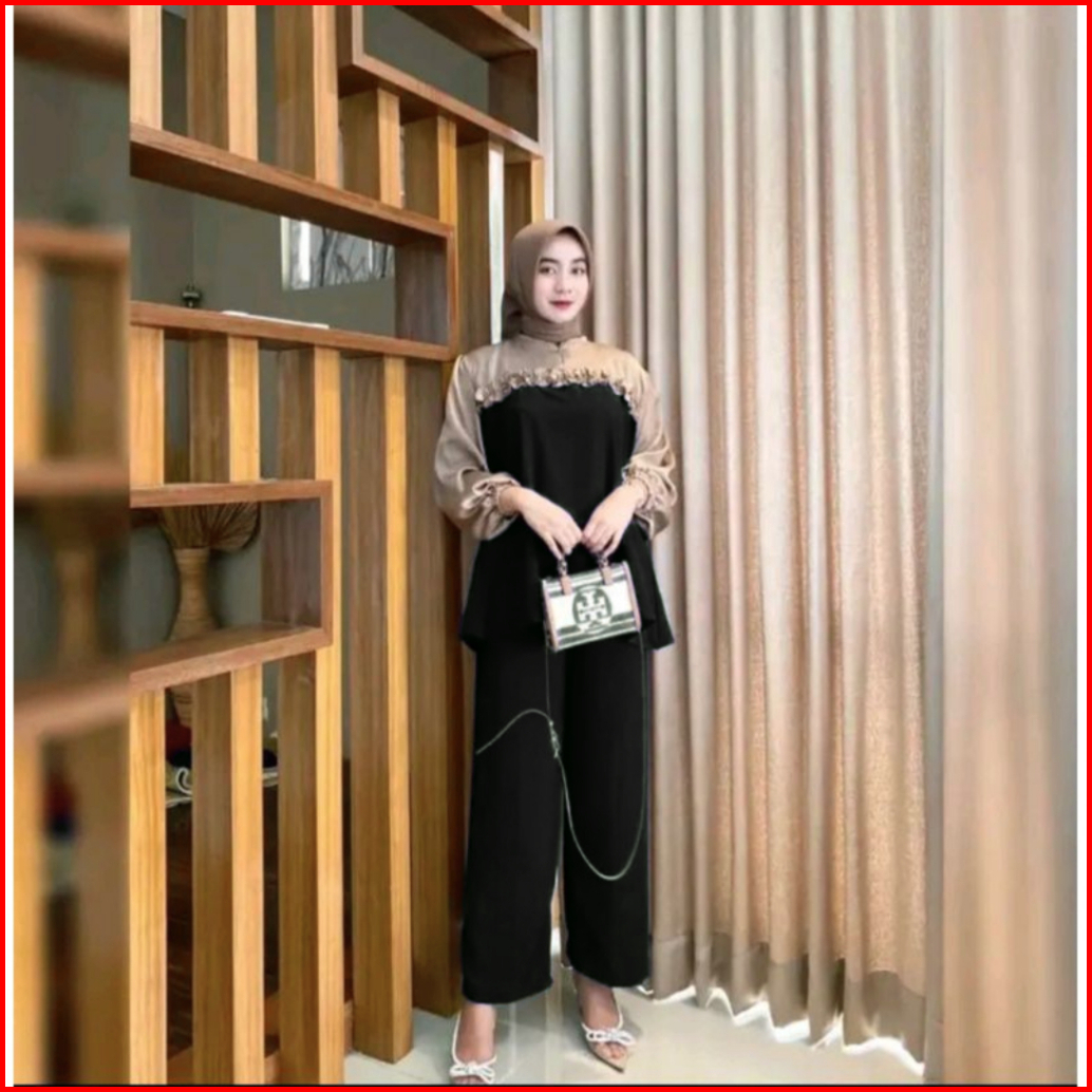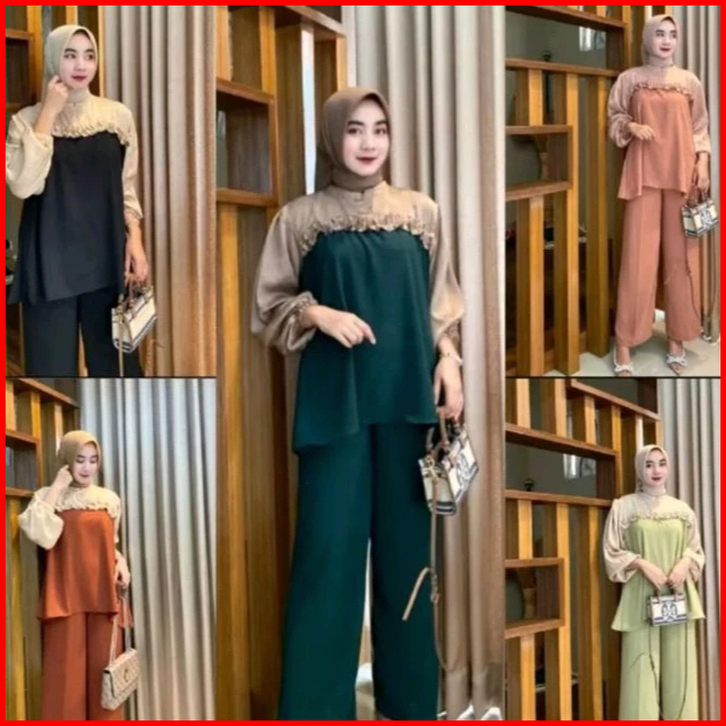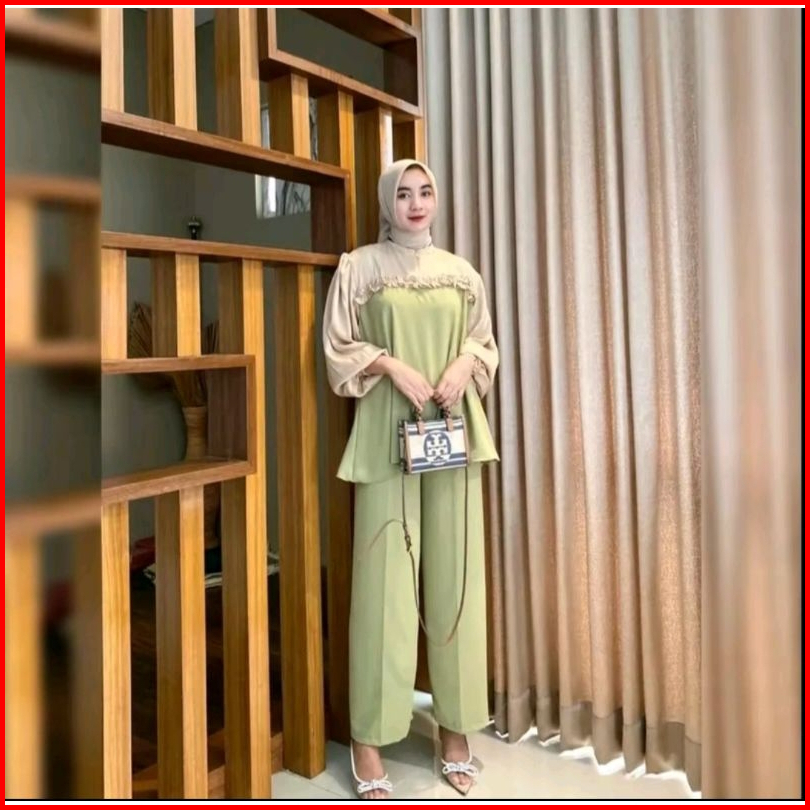 Set Shania Crincle Airflow Setelan Kombinasi Polos Busui Friendly Oneset Wanita Muslim Terbaru