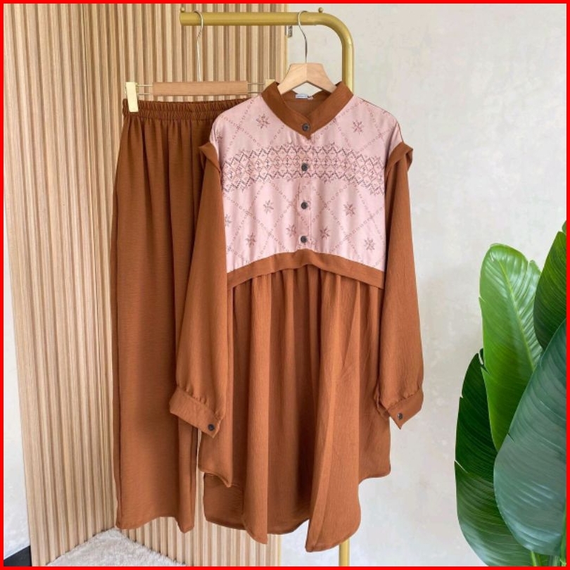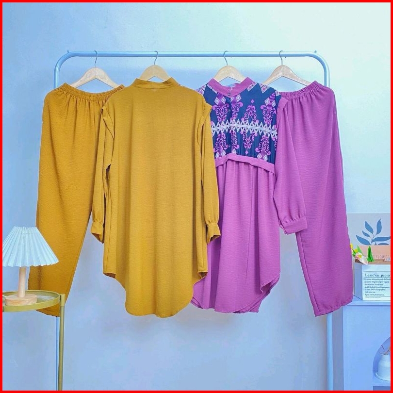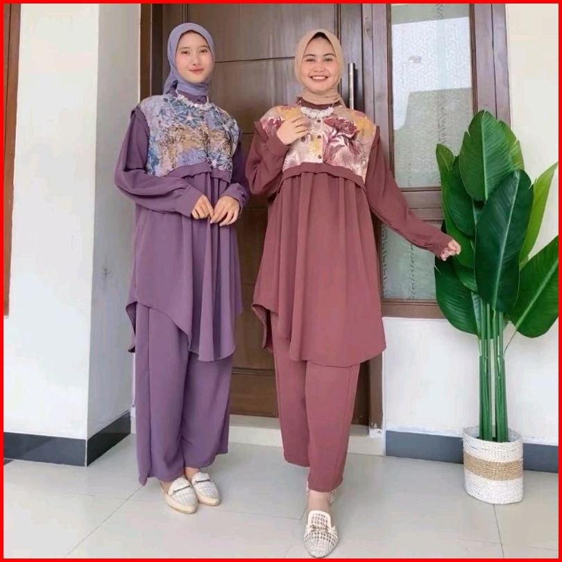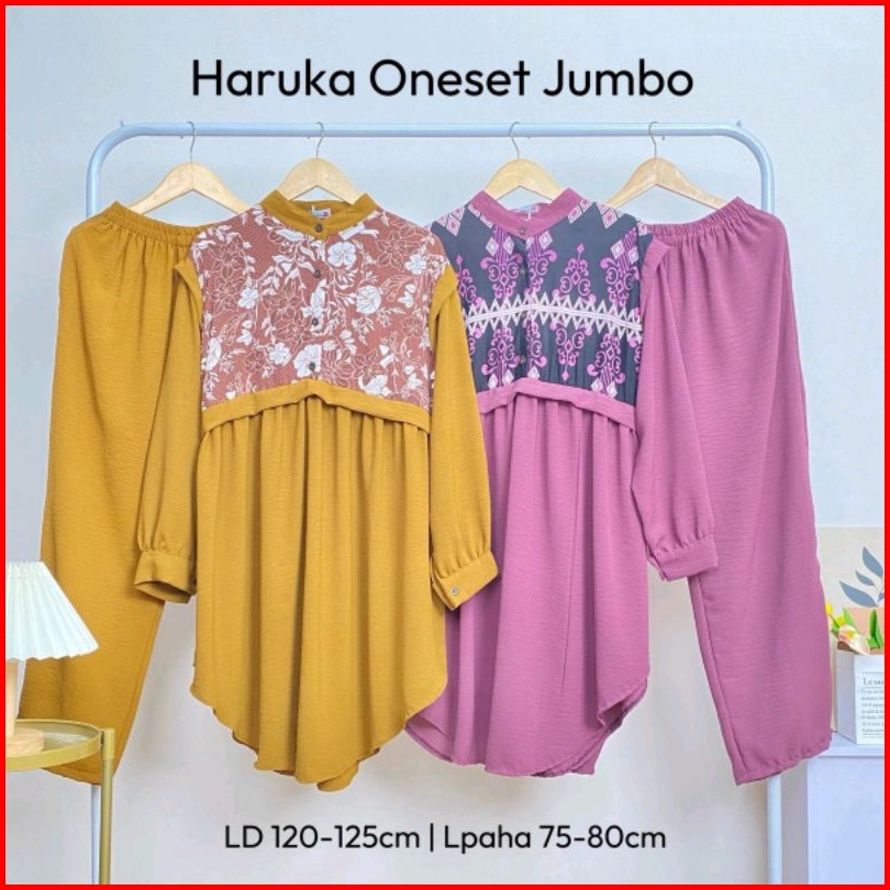 Eshantai Big Size Haruka One Set Ld 120 125 Tunik Setelan Celana Jumbo Wanita Bahan Crinkle Airflow Premium Kombi Ceruty