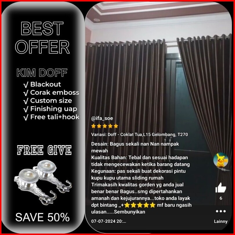 Gorden Jendela Blackout Polos Doff Import Premium Tebal Mewah Elegan 9 12 Gelombang Panjang 230cm