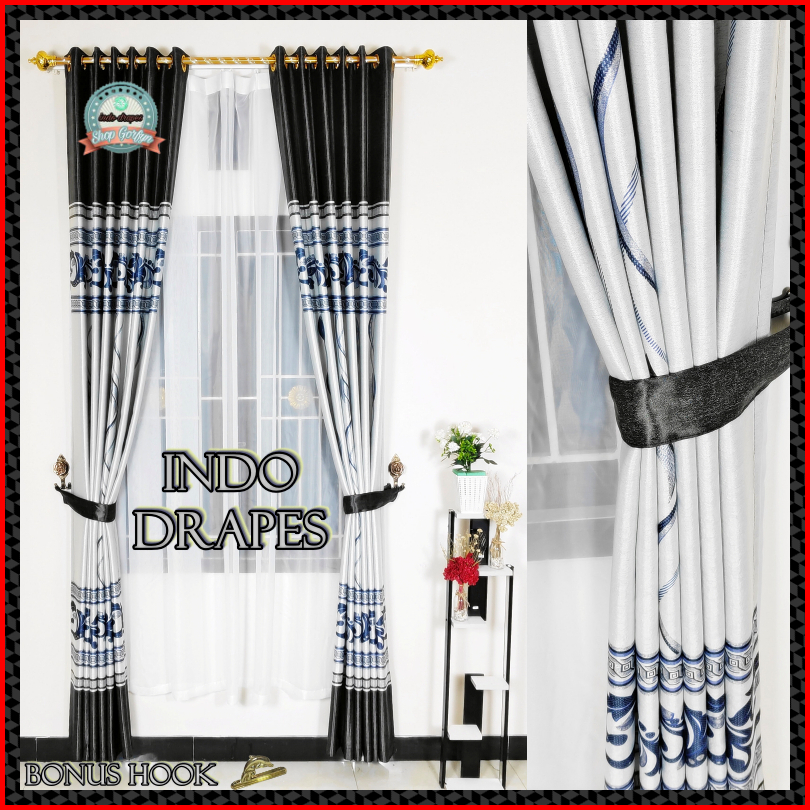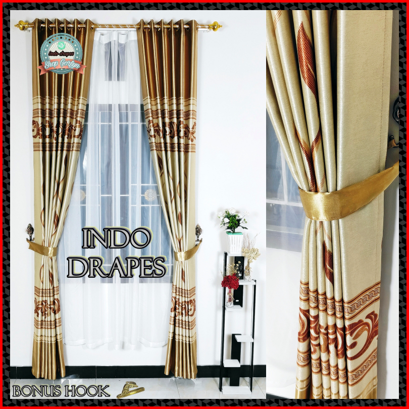 Gorden Pintu Kamar Minimalis Blackout Printing Coklat Import Model Smokring Ukuran Tinggi 230 Cm