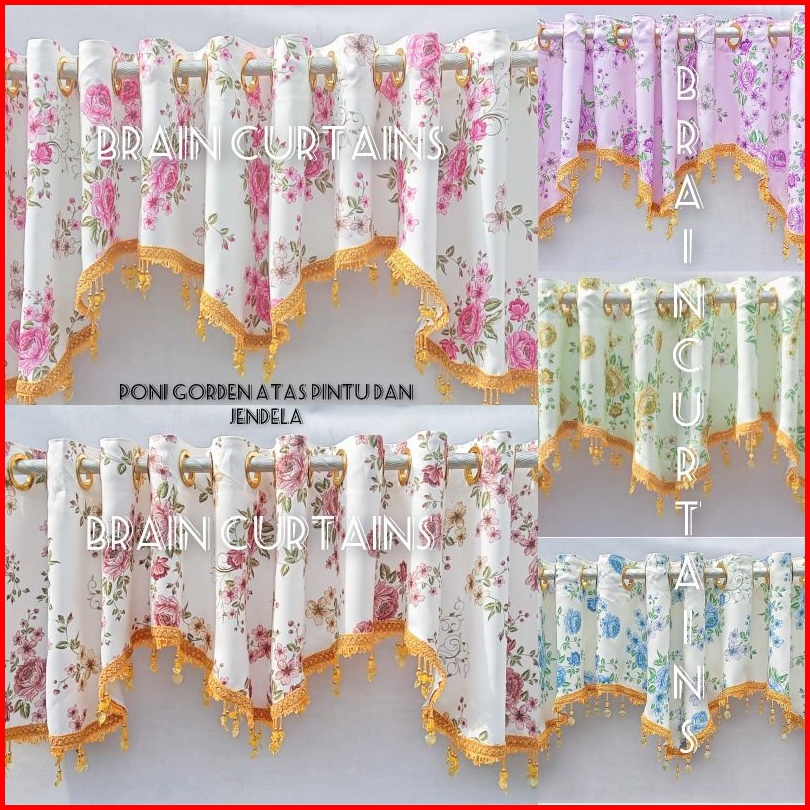 Gorden Poni Atas Pintu Loster Poni Hordeng Bahan Blackout Shabycik Ungu Pink Biru Hijou Coklat Rumbai Minimalis Terbaru