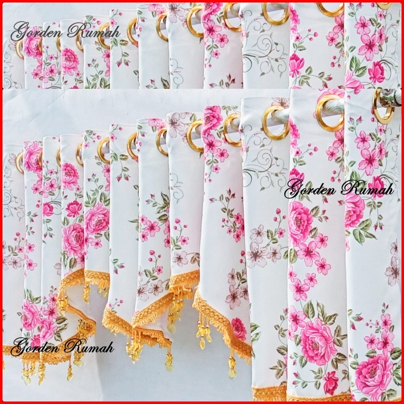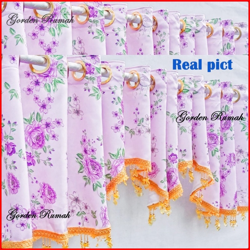 Poni Gorden Atas Pintu Motip Shabby Blackout Import Premium Pink Biru Coklat Hijau Ungu
