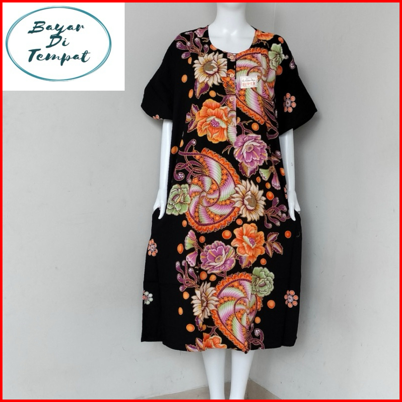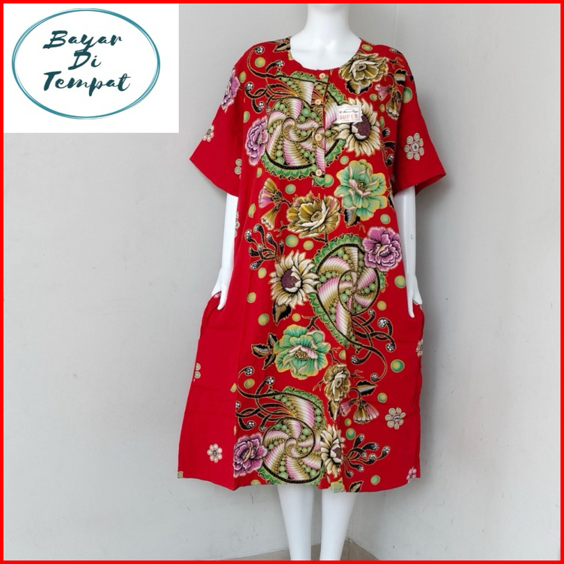 Ori Batik Kencana Ungu Label Biru Daster Pendek Busui Motif Bunga Terbaru Jumbo Ld.118 Cm Baju Santai Piyama Tidur Wanit