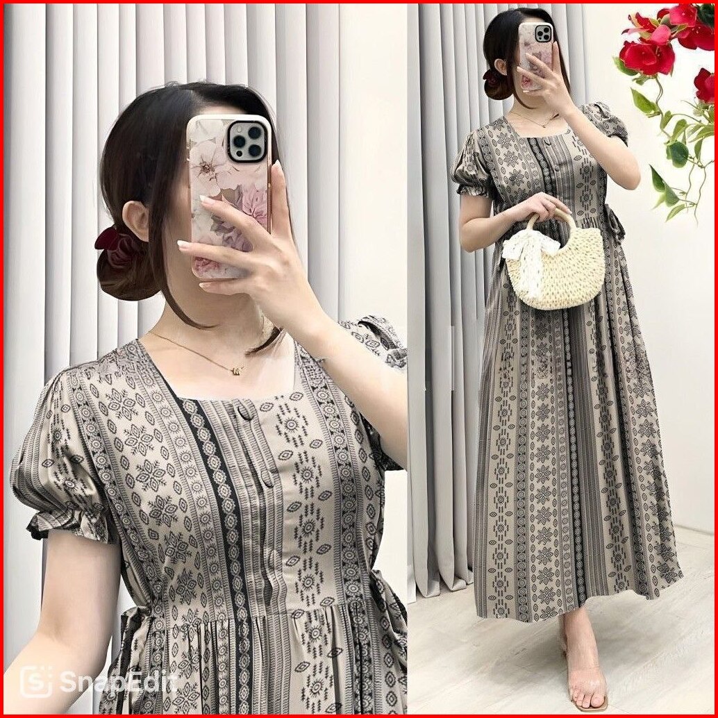 Daster Dress Cherry Kekinian - Daster Busui Rayon Premium - Daster Dress Busui