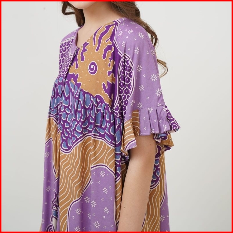 Jessa Ld 130 Baju Tidur Daster Rempel Naila Rayon Premium Busui Friendly Lengan Pendek Motif Modern Abstrak Elegan Kekin