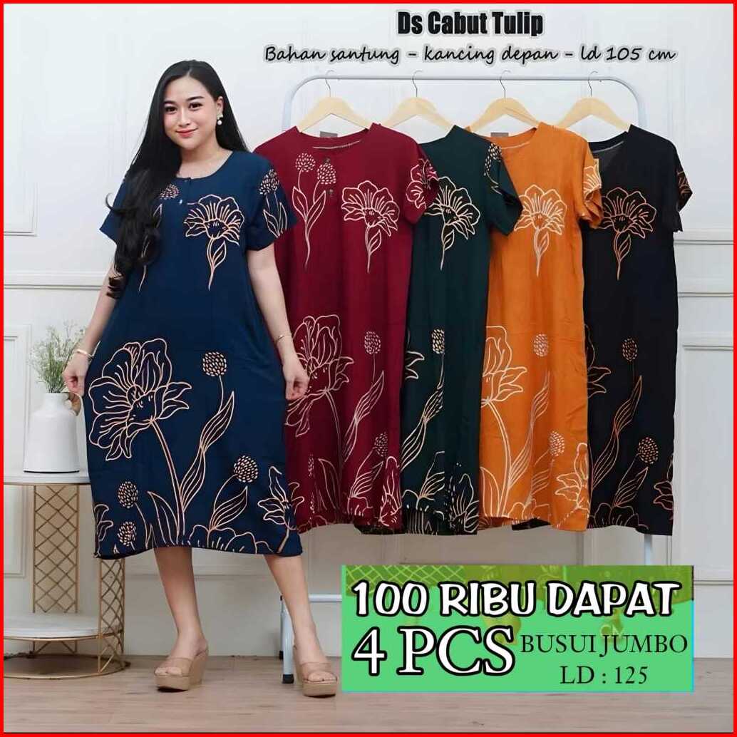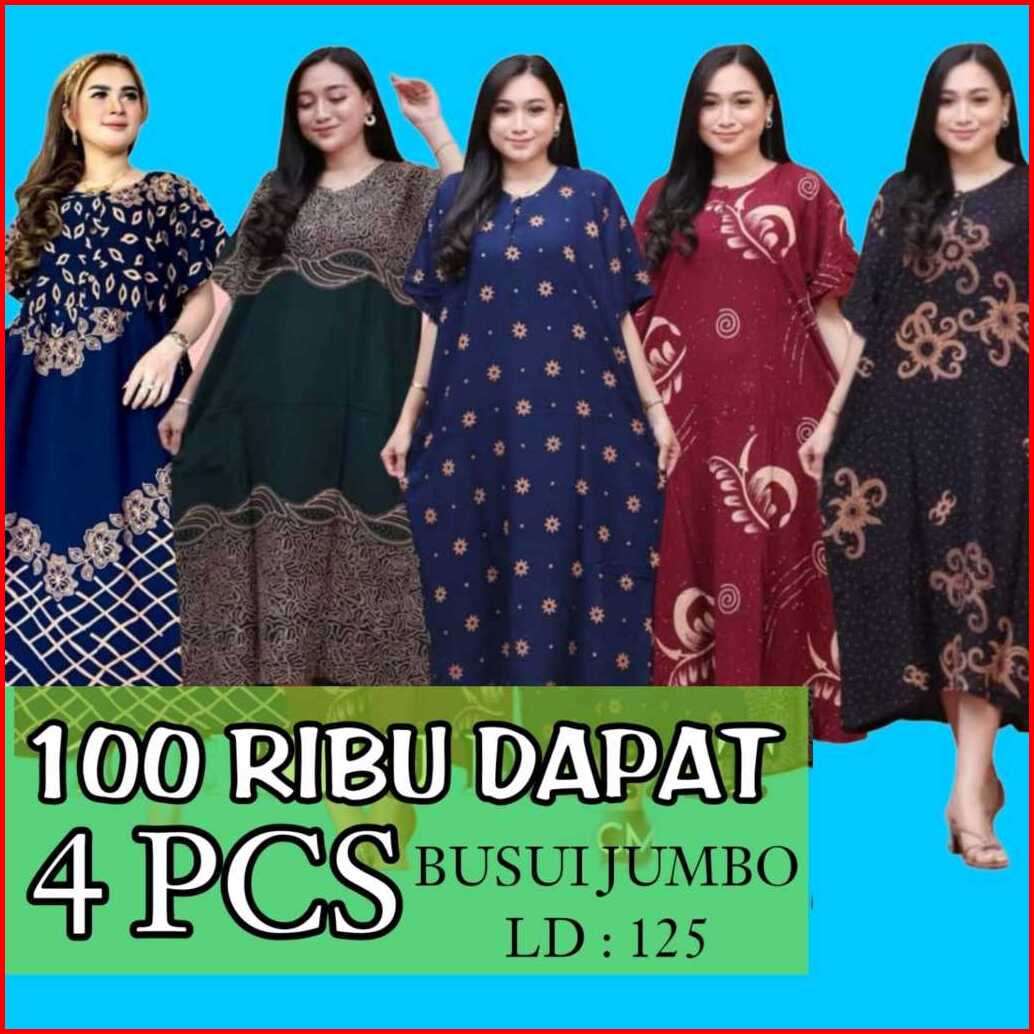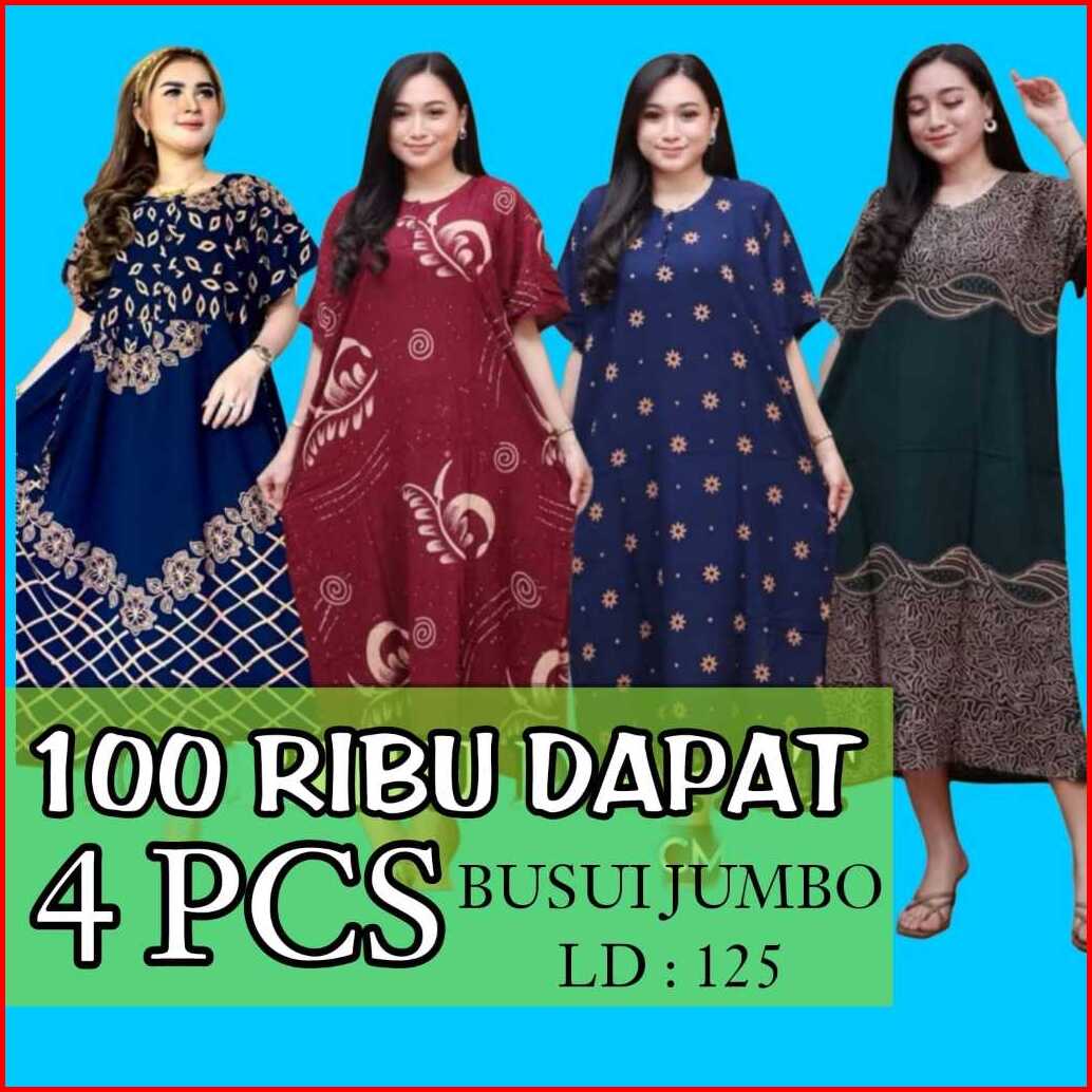 Daster Jumbo 100rb Dapat 4pcs Paket Hemat Ld 125 Busui Kancing Dress Bahan Rayon Premium Arab Murah