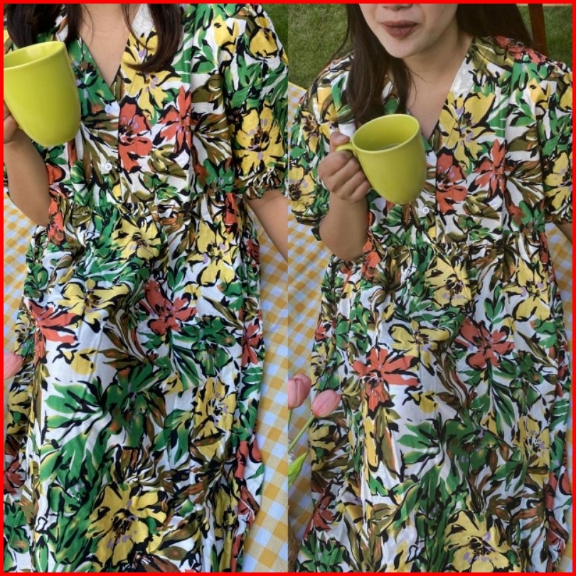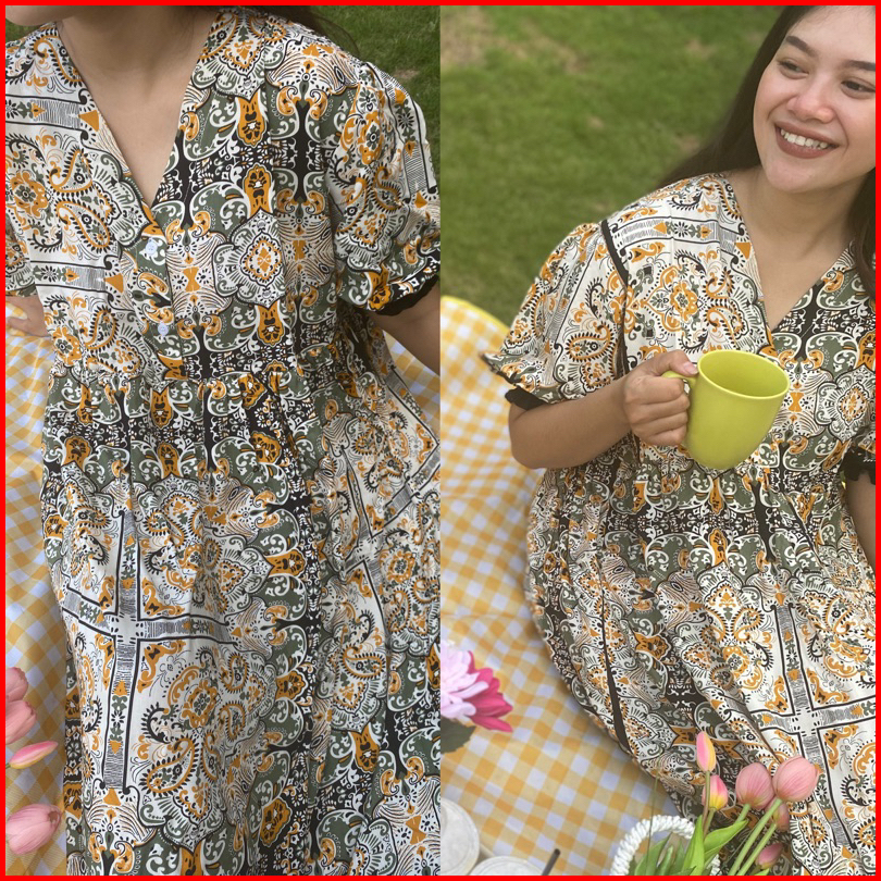 Dress Amina Bigsize Daster Wanita Kancing Casual Kekinian Katun Rayon Bumil Busu Midi Pendek Panjang