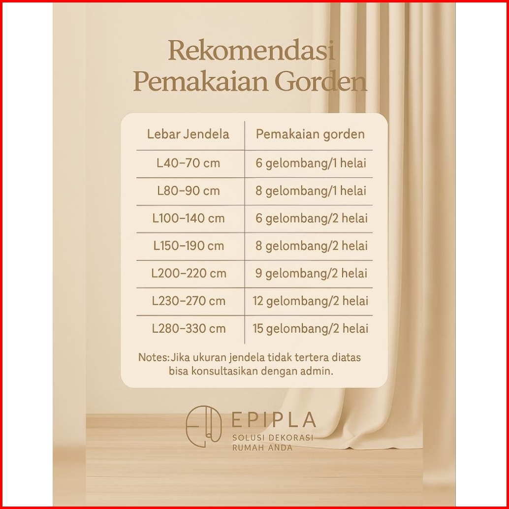 Epipla-gorden Polos Blackout Tanpa Emboss 90 Tebal Kain Import Finishing Uap