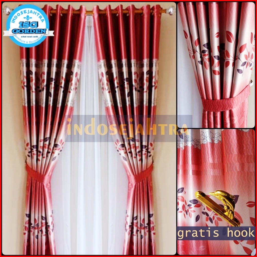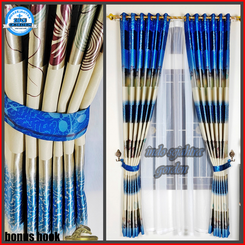 Gorden Pintu Kamar Tidur Aesthetic Blackout Import Printing Pink Hijau Biru Model Smokring