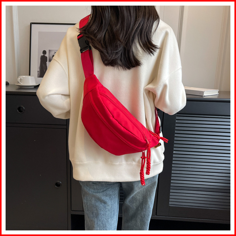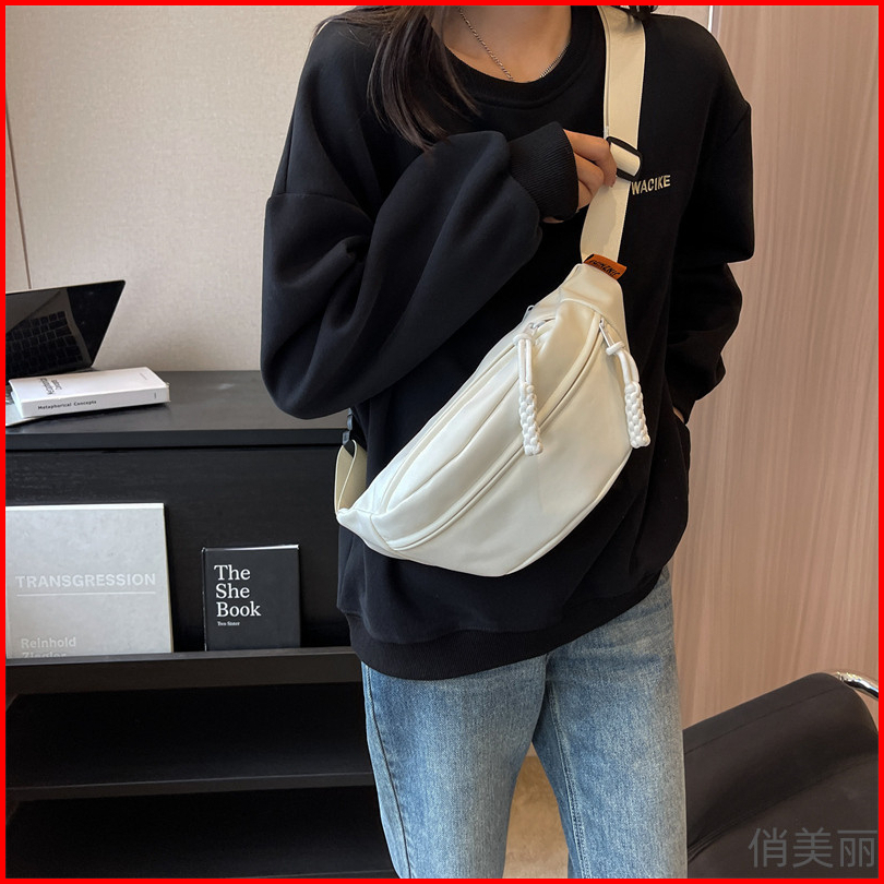 Tas Selempang Wanita 2023 Mode Gaya Korea Baru Ritsleting Gaya Asing Tas Pinggang Wanita Tali Bahu Lebar Tas Kecil Tas L