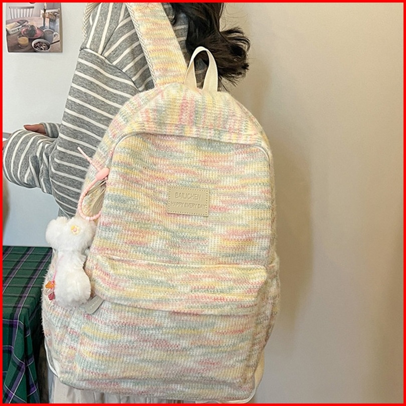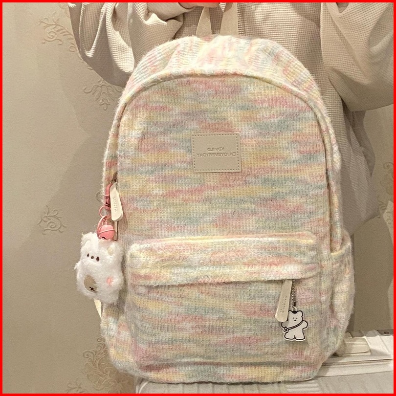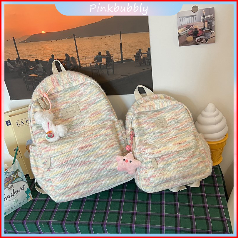 Pinkbubbly. Ready Pelangi Mewah Rajutan Tas Sekolah Wanita Jepang Tas Bahu Mini Ransel Siswa Fashion Bag Kuliah Import B