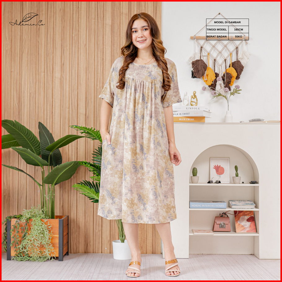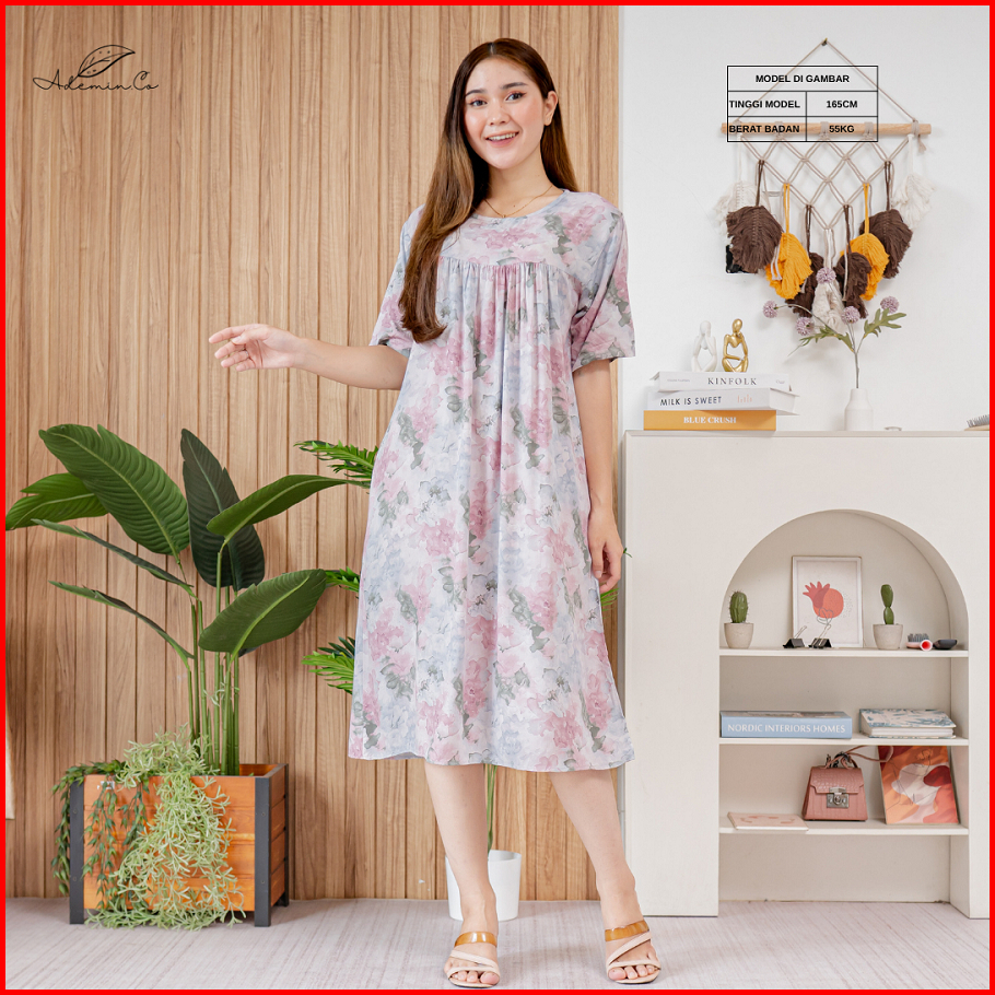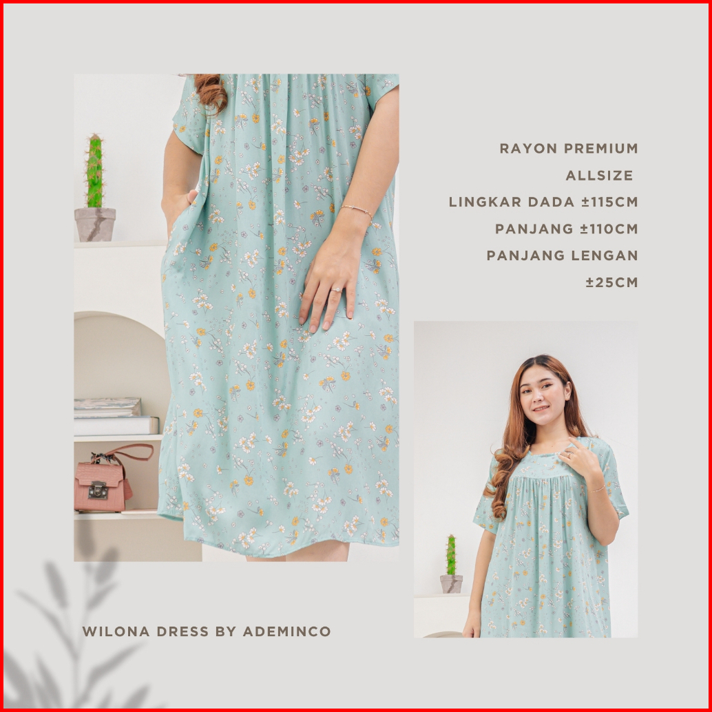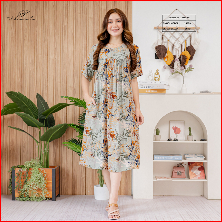 Ademinco Wilona Midi Dress Rayon Reactive Daster Pendek Ruffle Dada