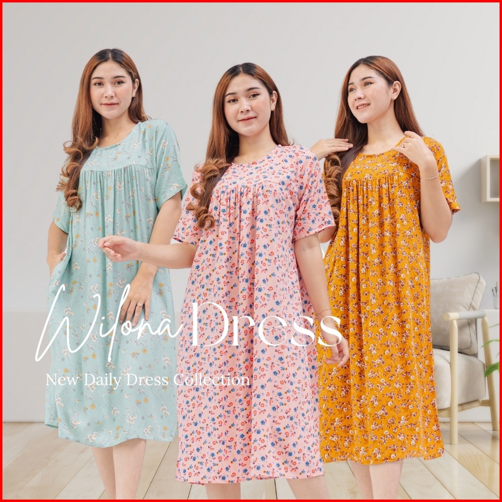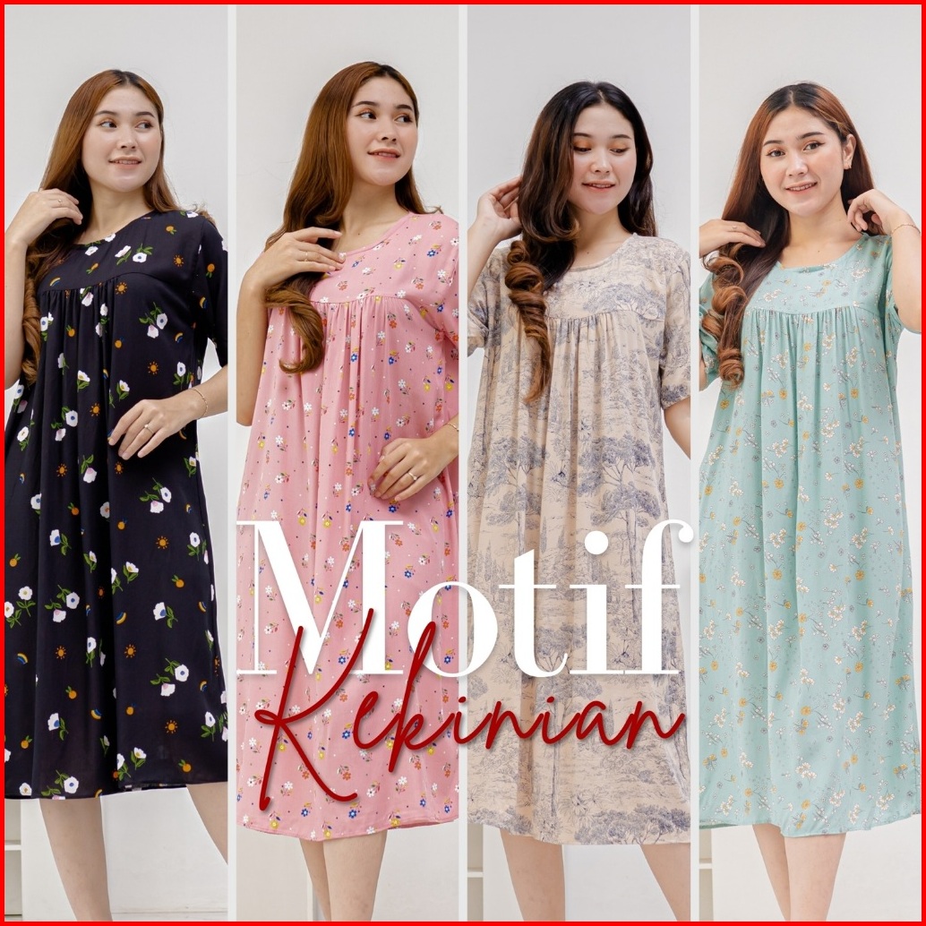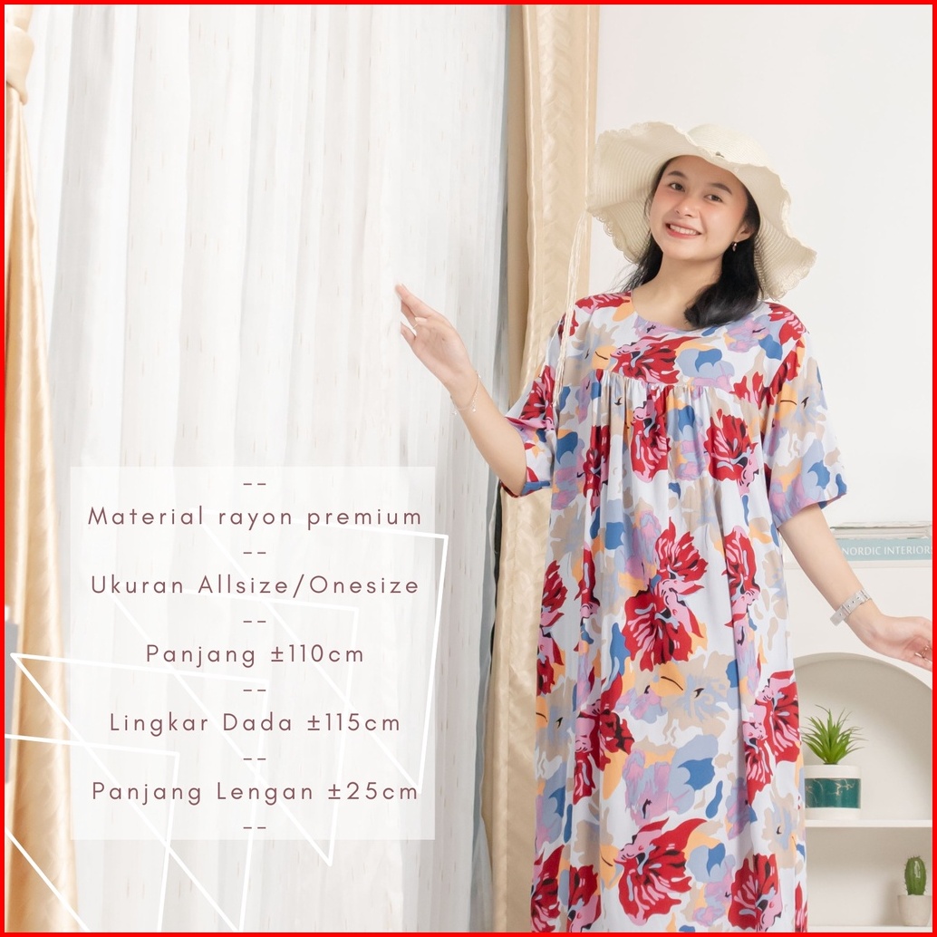 Ademinco Wilona Midi Dress Rayon Reactive Daster Pendek Ruffle Dada