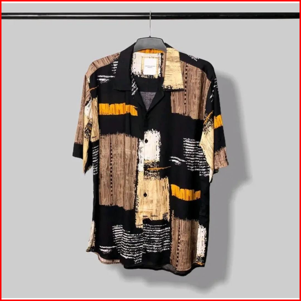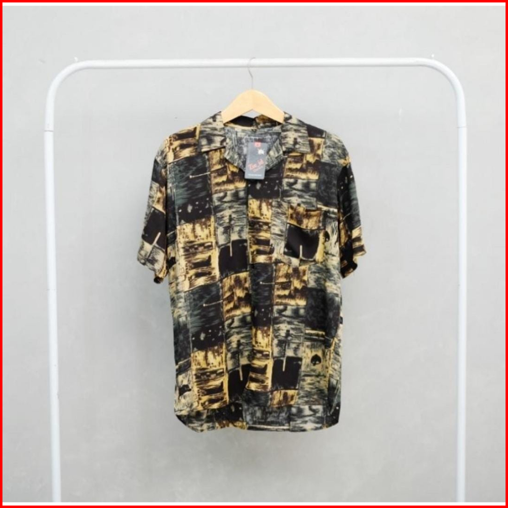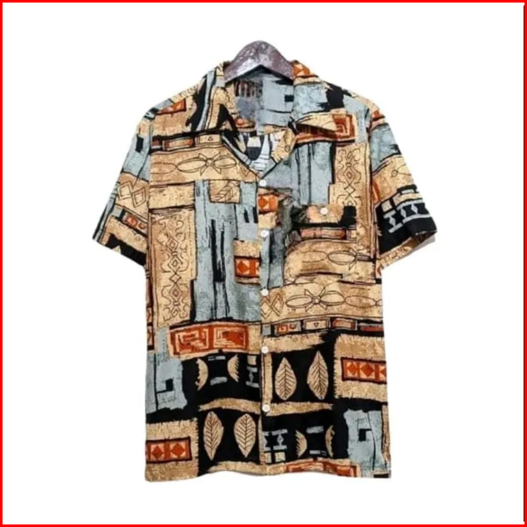 Kemeja Pria Abstrak Vintage Casual Lengan Pendek Retro Bahan Rayon Viscose Import Adem Kemeja Hawaii Murah Berkualitas