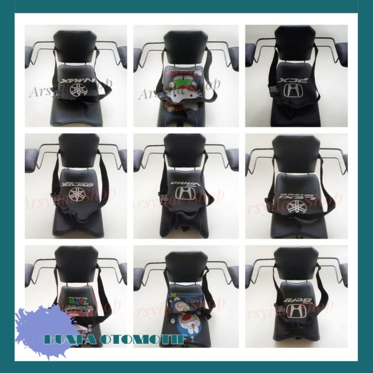 Doraemon(sandar), Frozen (sandar), Hello kitty (sandar), Keropi (sandar), Kuda pony (sandar), Minions (sandar), Spiderman (sandar), Tayo (sandar), Upin ipin (sandar), hitam biru sandar, hitam coklat sandar, hitam merah sandar, hitam pink sanbdar, hitam putih sandar, logo Scoopy(sandar), polos hitam sandar, tulisan Beat(sandar), tulisan Nmax(sandar), tulisan Vario sandar