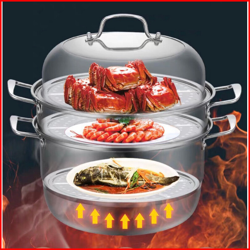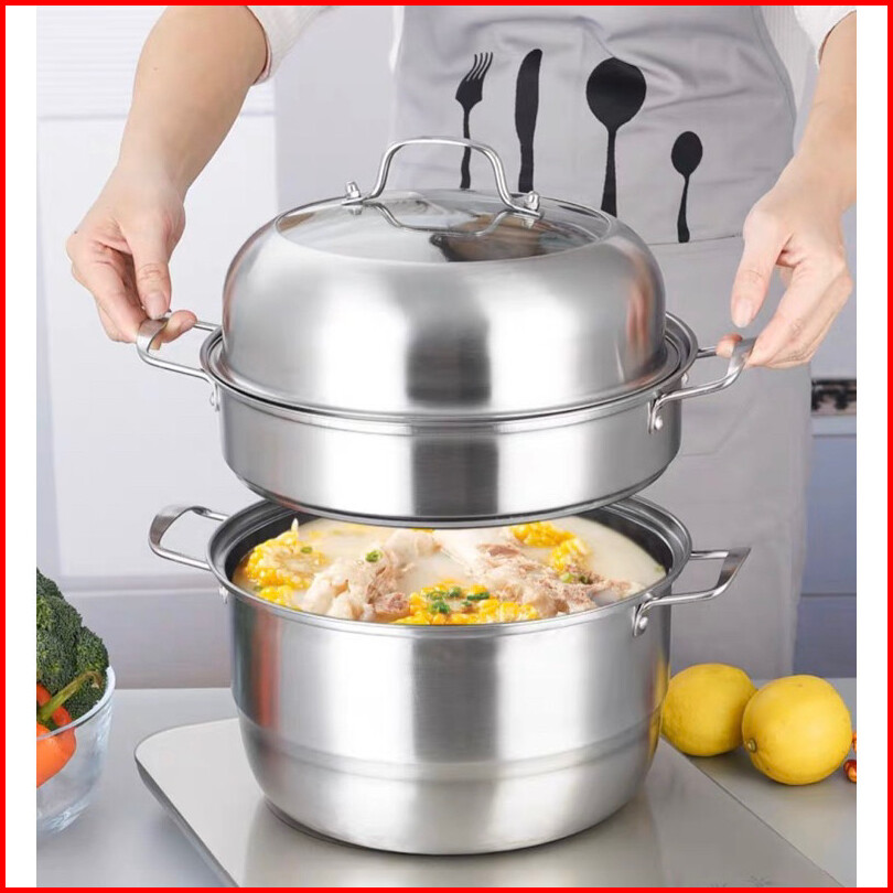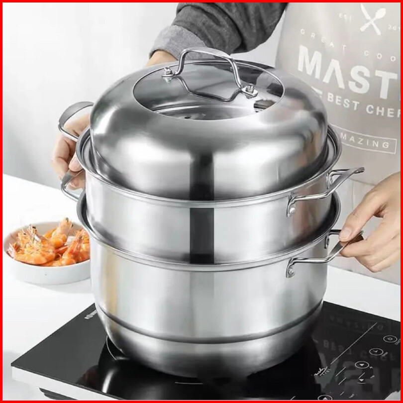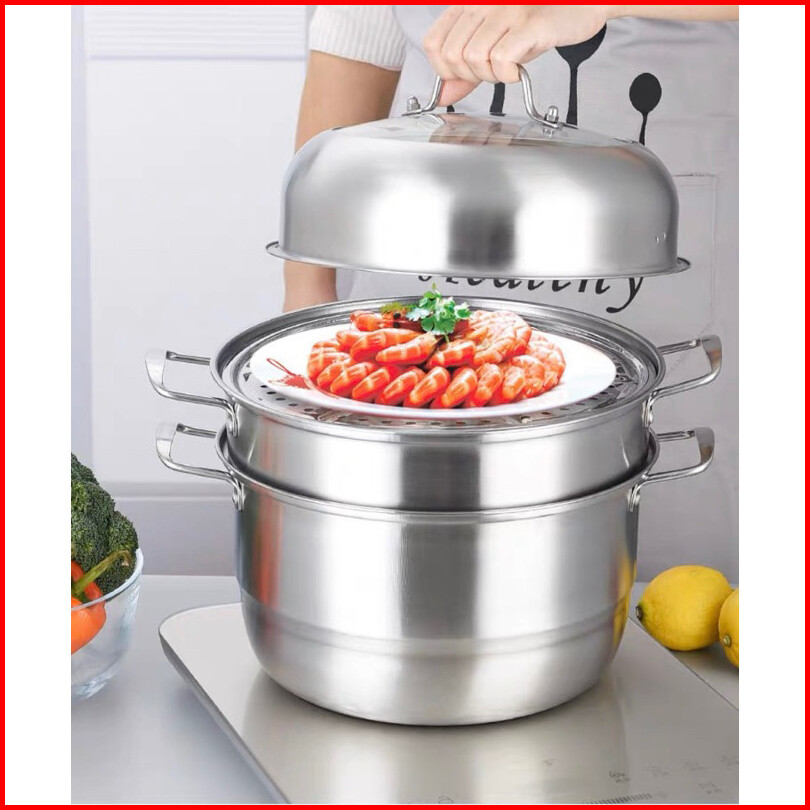 Panci Kukus Siomay Dimsum Bakpao Nasi Tim Steamer Dandang Stainless Steel Susun 3 Ukuran 28cm