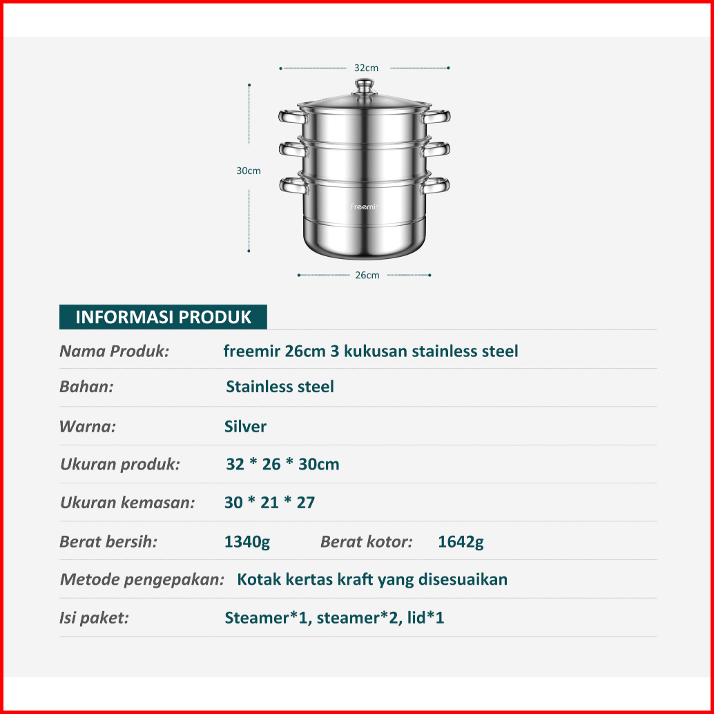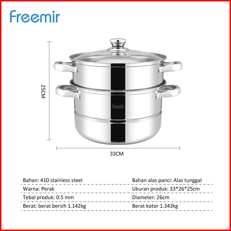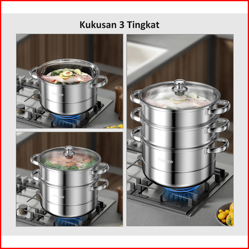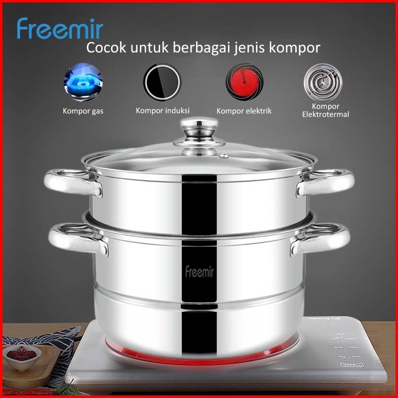 Promo Freemir Panci Kukus 2 3 Tingkat Double Stainless Steel Dandang Steamer Presto Serbaguna