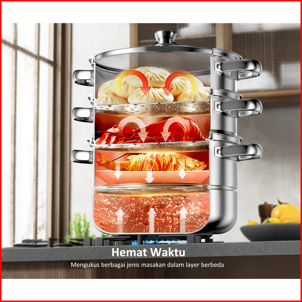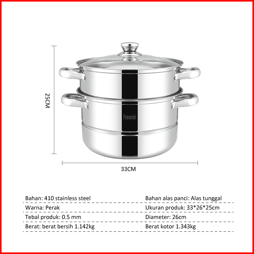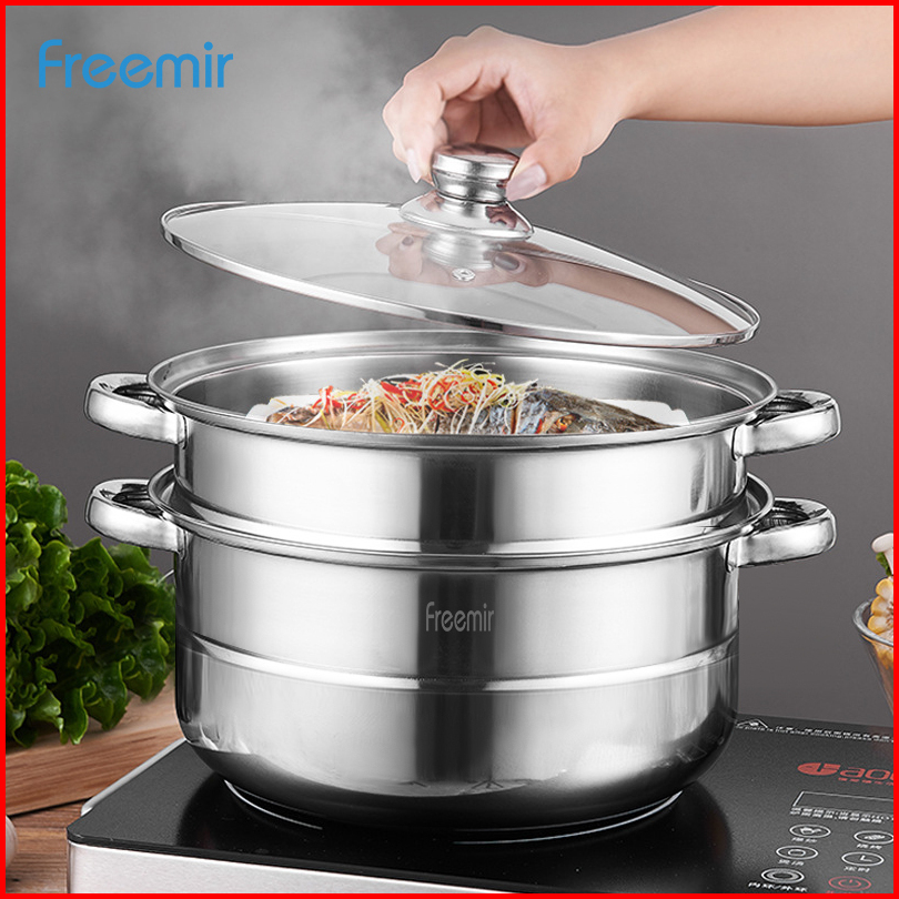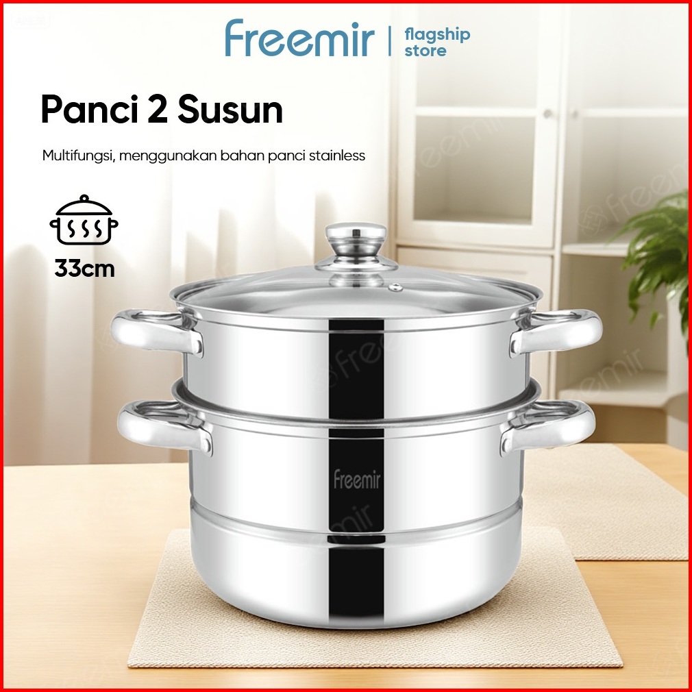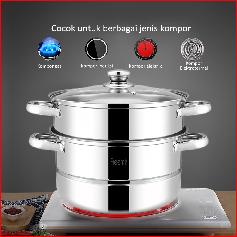 Freemir Panci Kukus 2 3 Tingkat Panci Rebus Steamer Stainless Steel Multifungsi Anti Karat Kerusakan Dandang 26 Cm